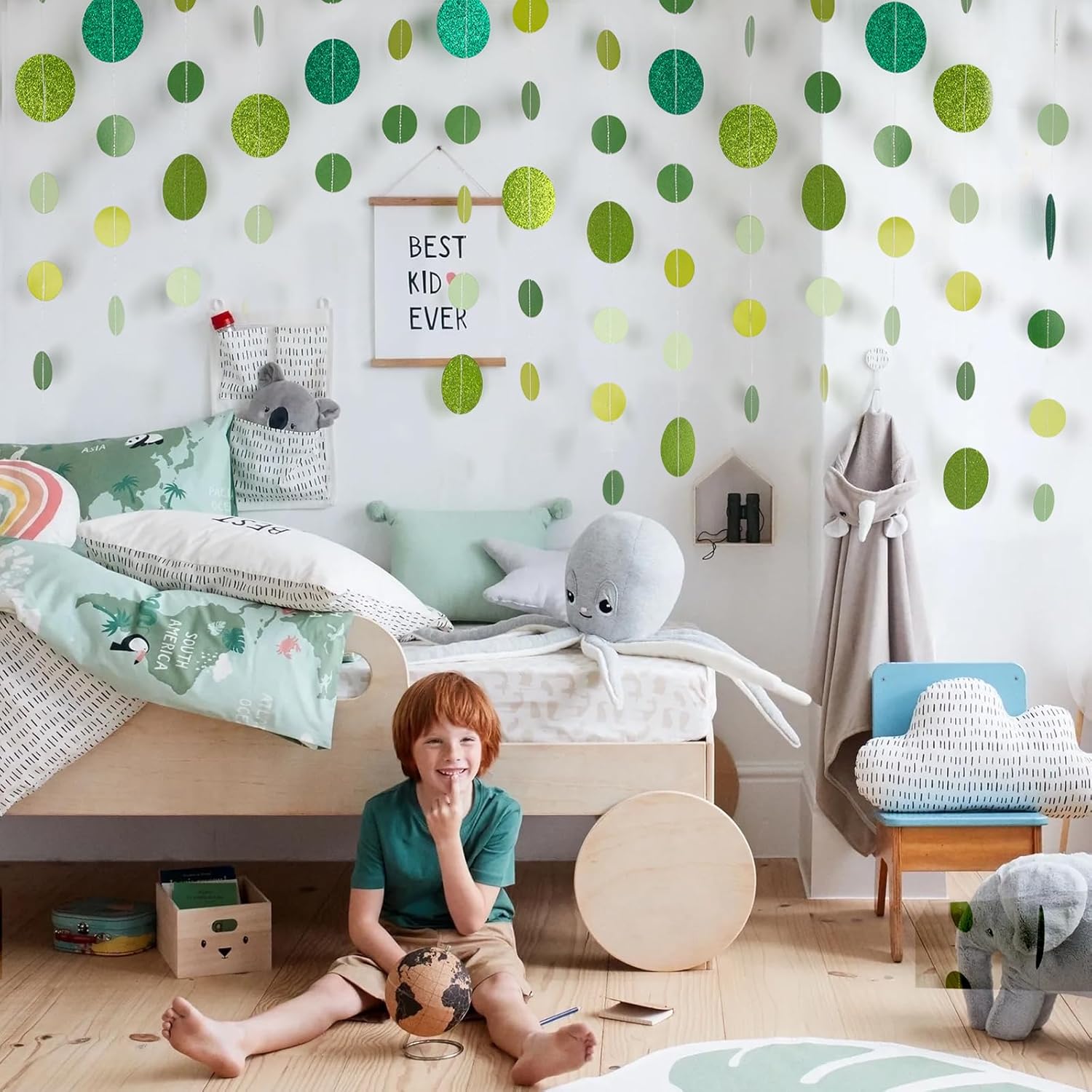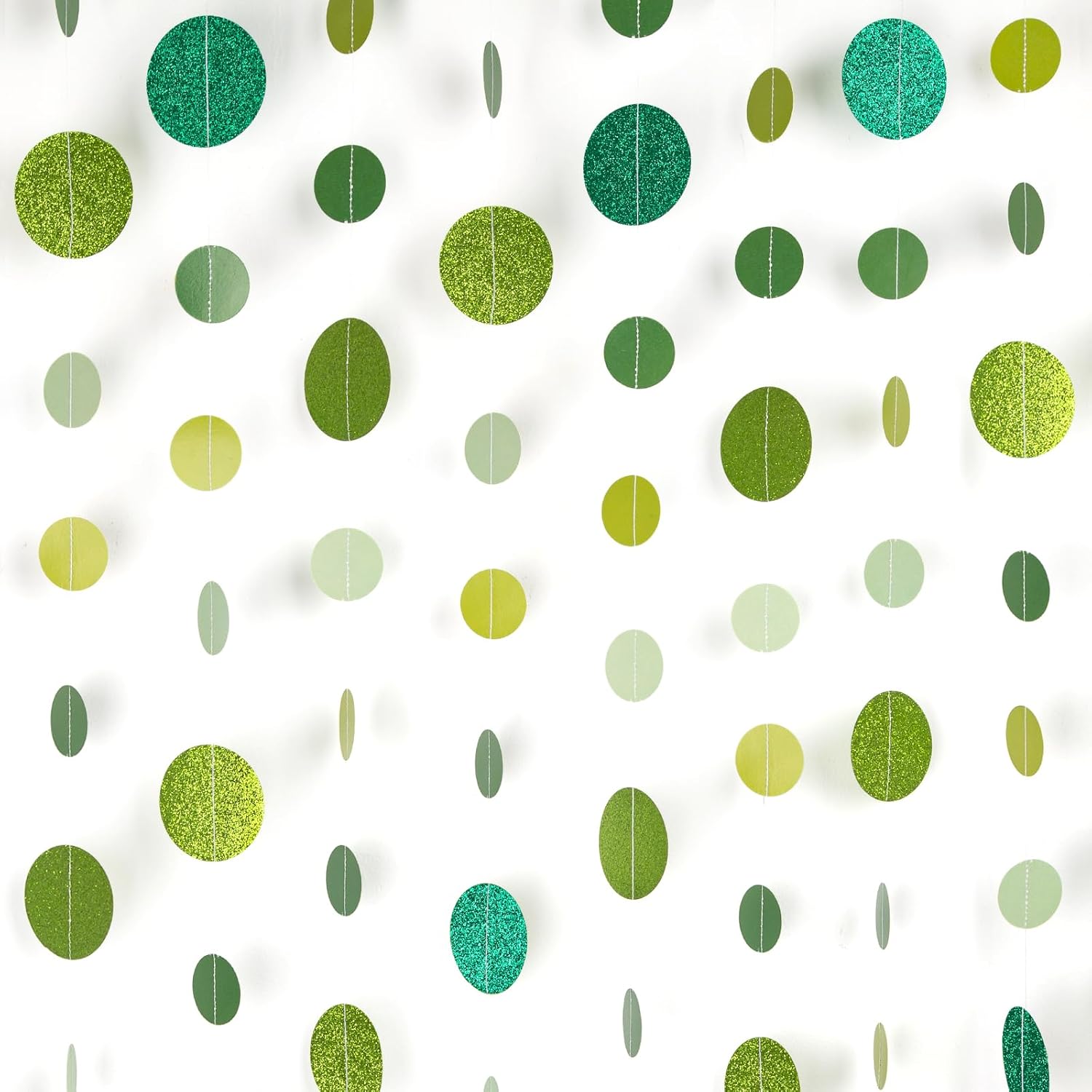 - 【Brighten Up Your Celebrations】 Add a lively touch to your festivities with our Green Glitter Dot Garland. Perfect for Easter, St. Patrick’s Day, Spring gatherings, birthdays, baby showers, weddings, and holiday parties, this shimmering garland brings charm and elegance to any setting.