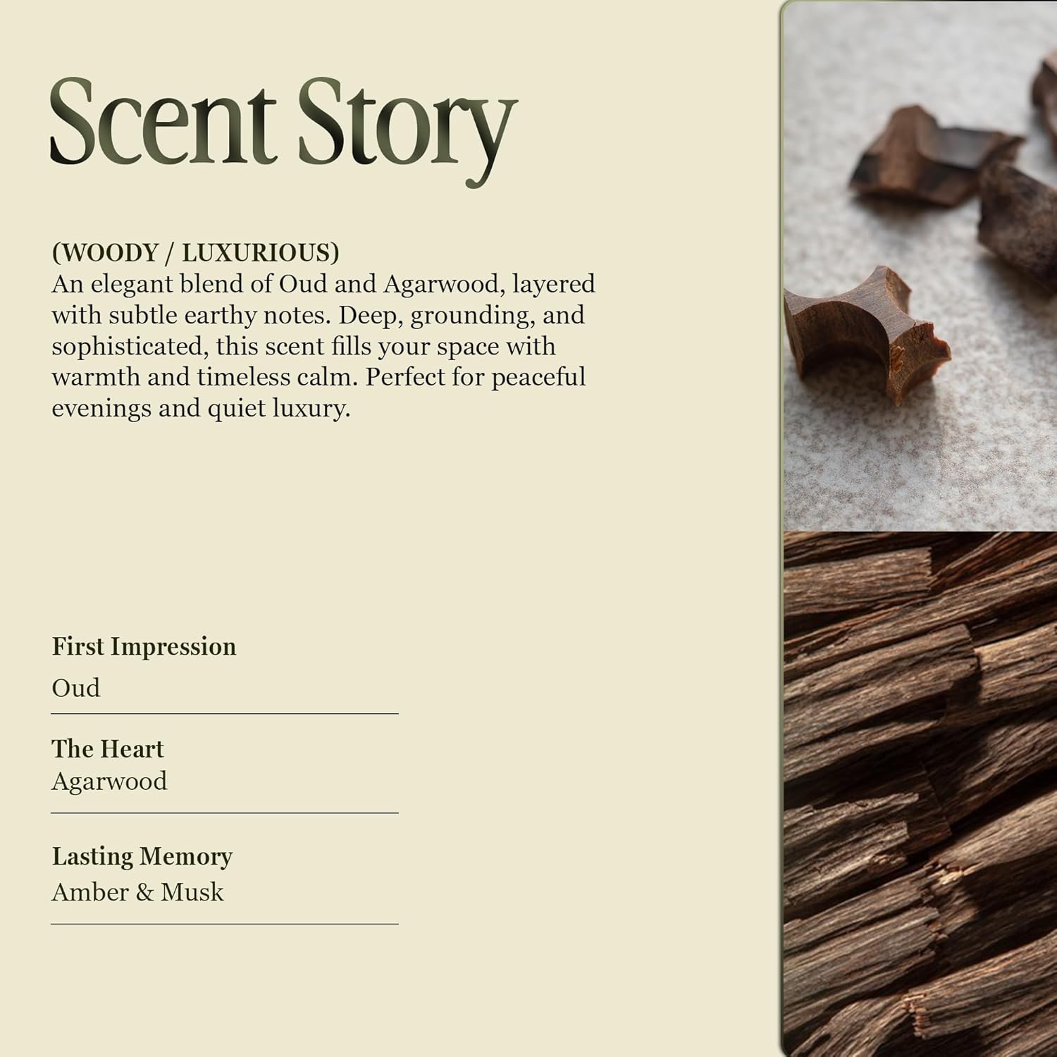- Scent : OUD & Agarwood