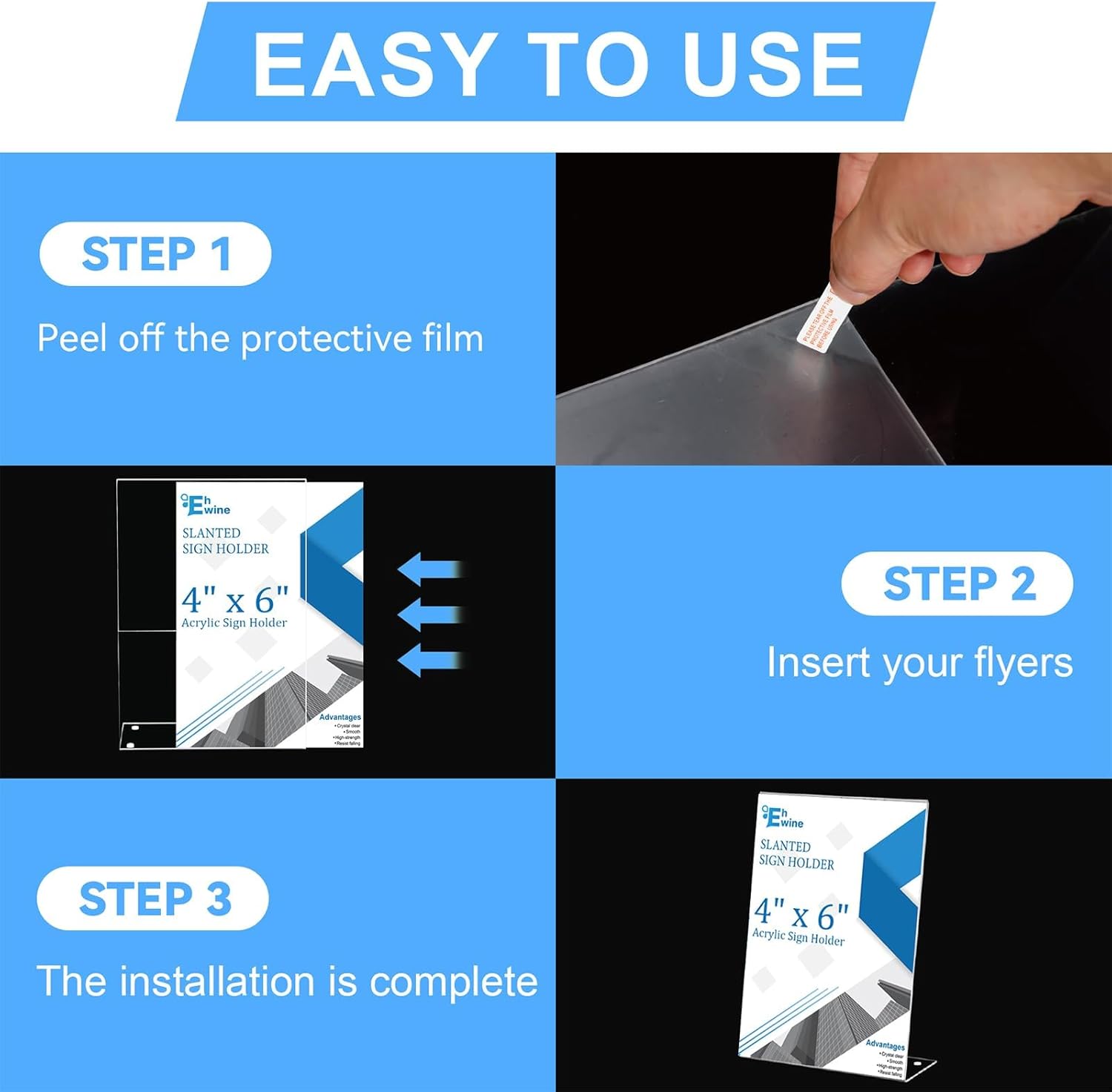 EHWINE 24 Pack 4 x 6 Acrylic Sign Holder, Clear Plastic Signs Display Stand, Vertical Slanted Back Paper Holder Stand up Table Top Sign Holders Flyer Stand Frames Suitable for Office Business Store