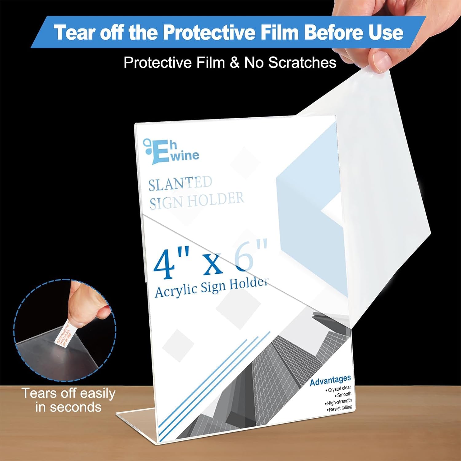 - Clear Picture Frame: EHWINE acrylic sign holders are very clear and transparent, and the L-shape design provides a professional look for your display. With no distortion or cloudiness, and your message will be conveyed with crystal clarity