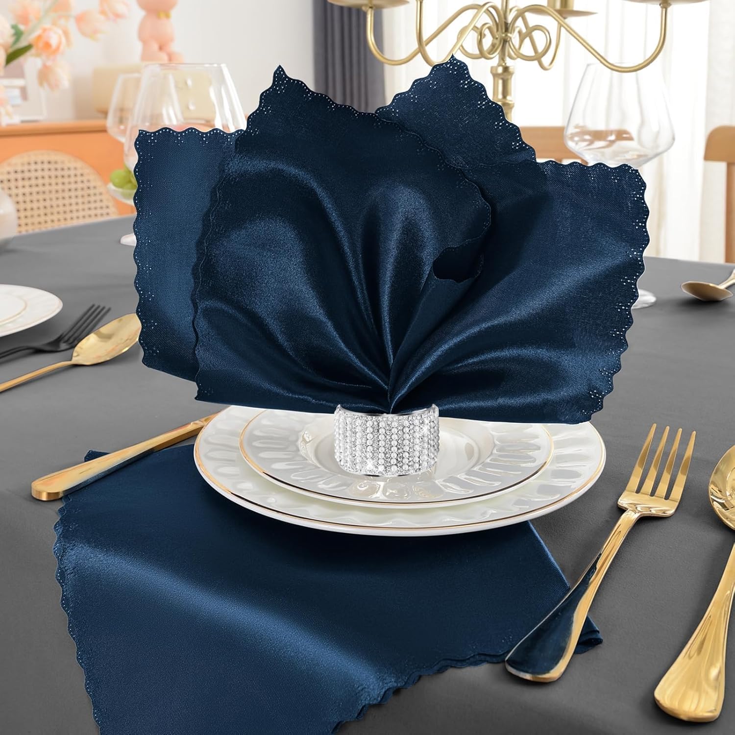 Diamond Pearls12cs Napkin Rings Rhinestone Crystal Glass Framed Napkin Holder Handmade Serviette Buckles for Christmas, Easter, Thanksgiving Day Wedding Banquet Home Party Decoration Dining Table