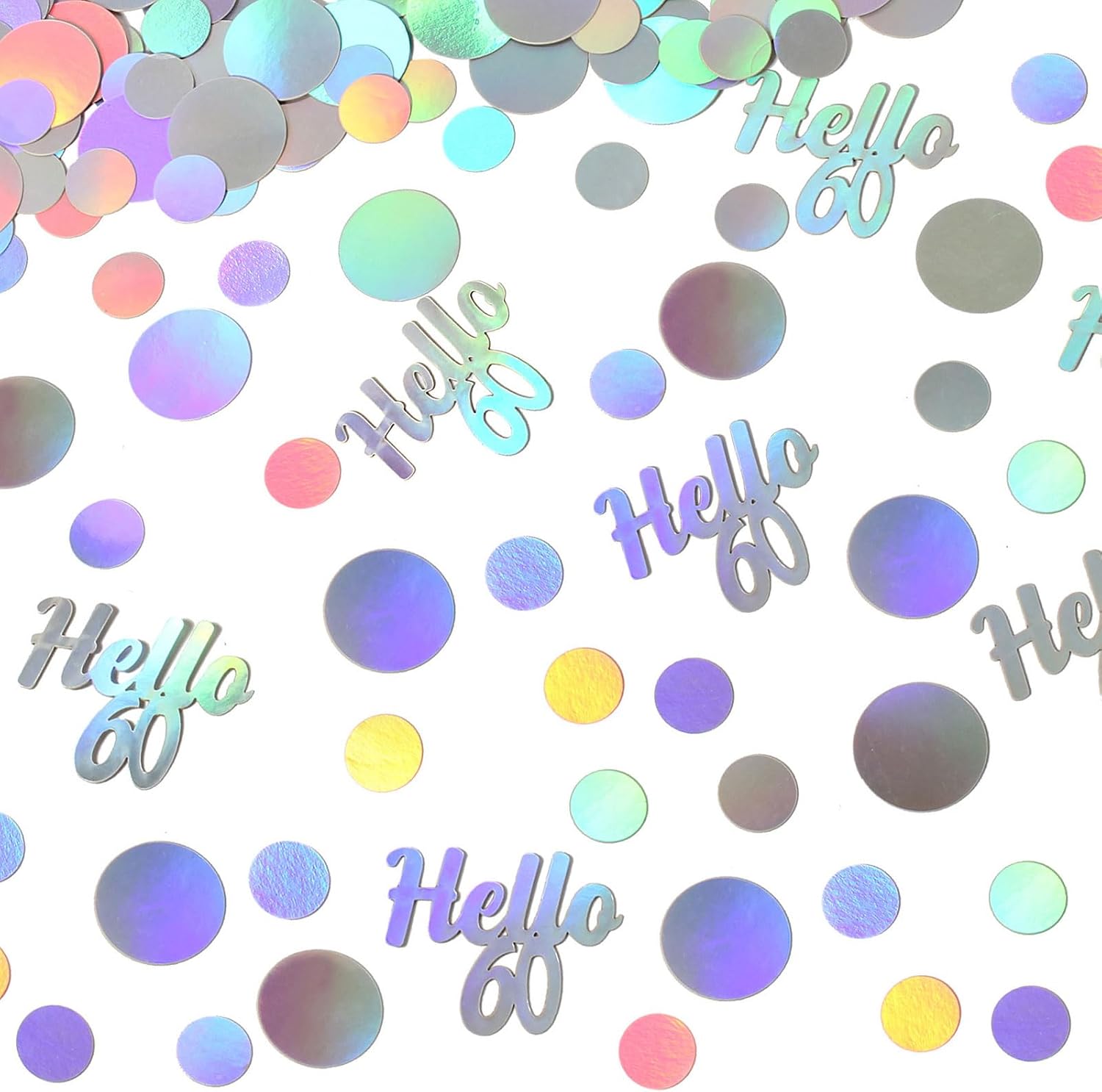 Hello 60 Birthday Confetti for Table Iridescent 60th Birthday Party Decorations for Women Sixty Years Old Happy Birthday Tables Scatter Circle Dots Party Confetti Anniversary Decor 300PC