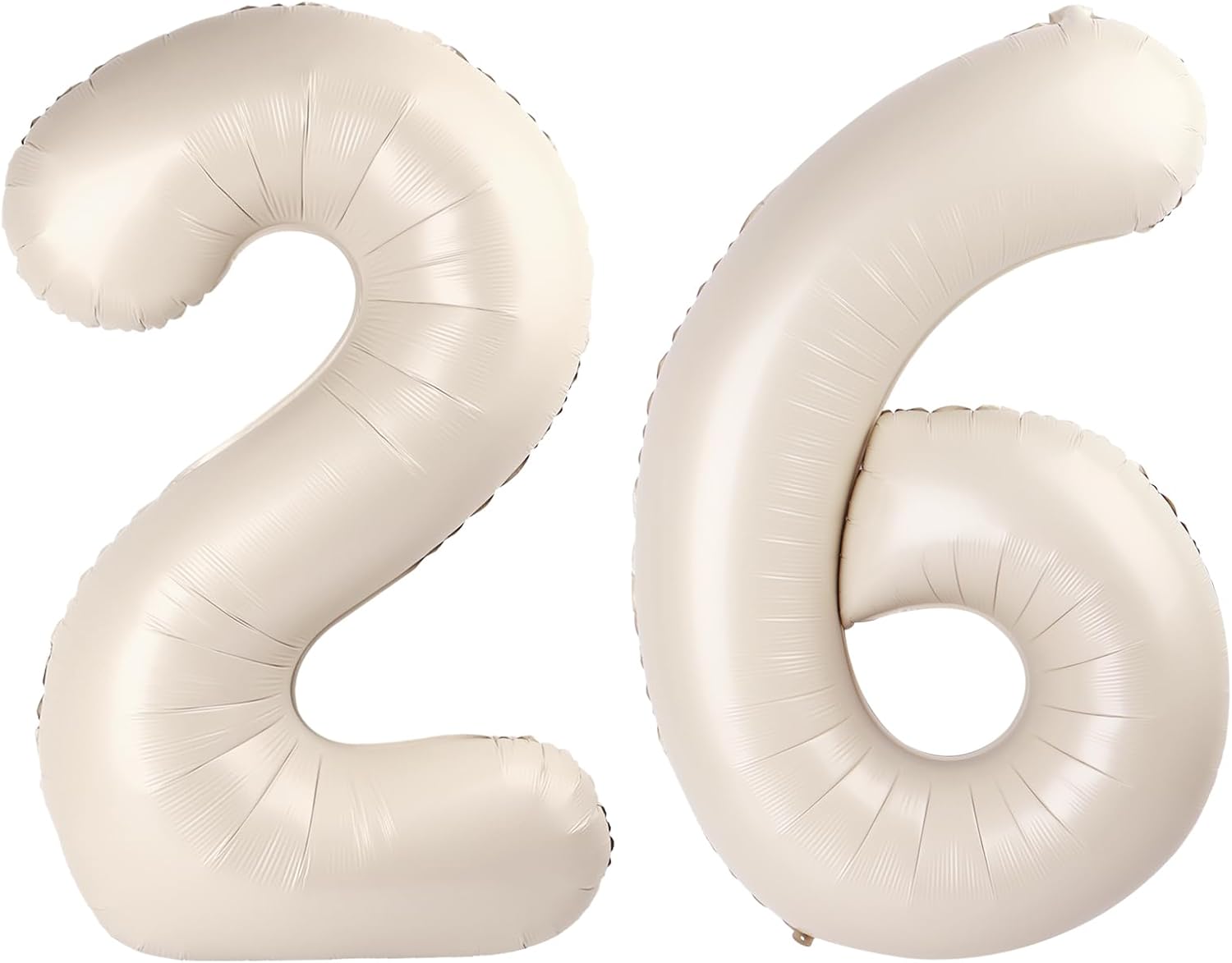 - 4.Perfect Size Simple Installation:40 inch 26 balloon number,huge size and beautiful balloons appearance.26 birthday balloon can reduce the complexity of installation,you can use a straw at the number 26 hole,with natural air to blow and deflate the balloon number,filled 90% of the seal,without fingers tied,greatly reduce the installation troubles for you.After the birthday decorations for boys party,use a straw or deflate yourself,Amazing and convenient cream white number balloon!