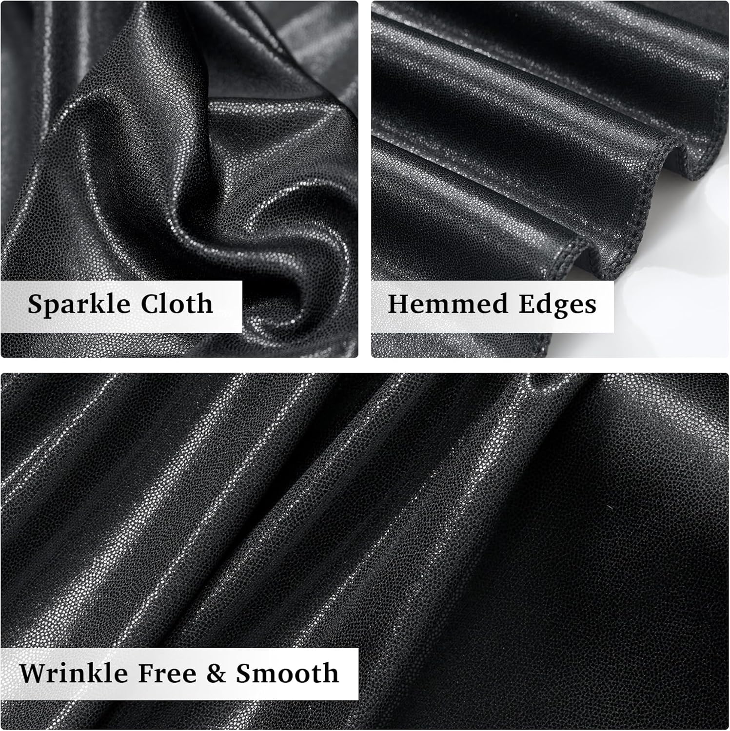 - Glitter Cloth: Made of soft and smooth polyester fabric. Backdrop drapes with bronzing technology is shiny and sparkly. No Sequin Fall OF.