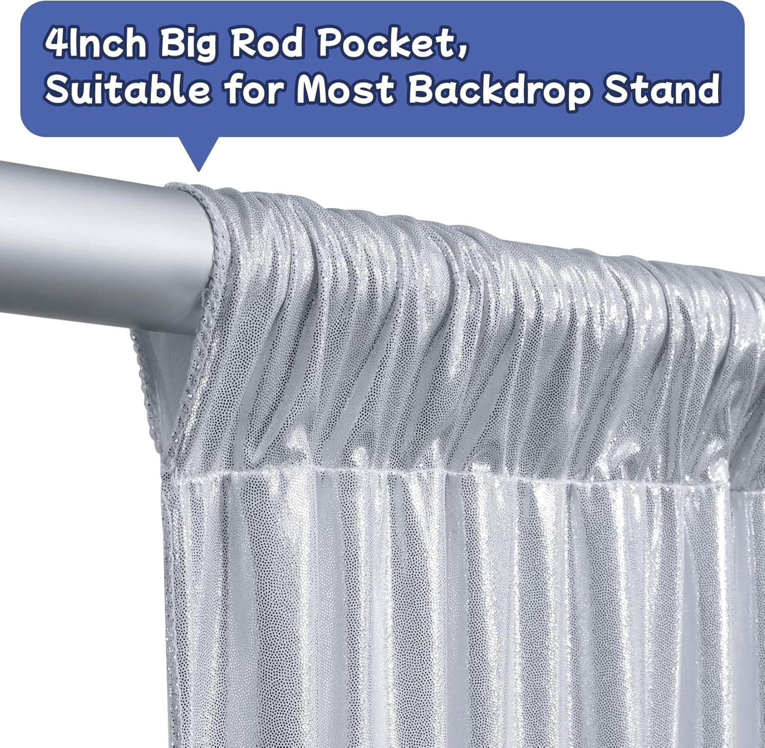- 10FT Silver Sequin Background Drapes: Wrinkle Free, Durable, Reusable. The Silver photography drapes are wrinkle-free, soft touch feeling. You can use them with our another style of backdrop which has kinds of colors for choose.