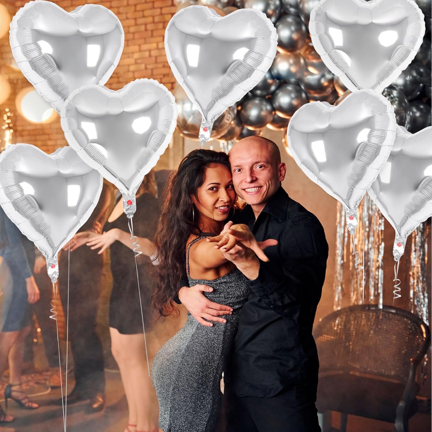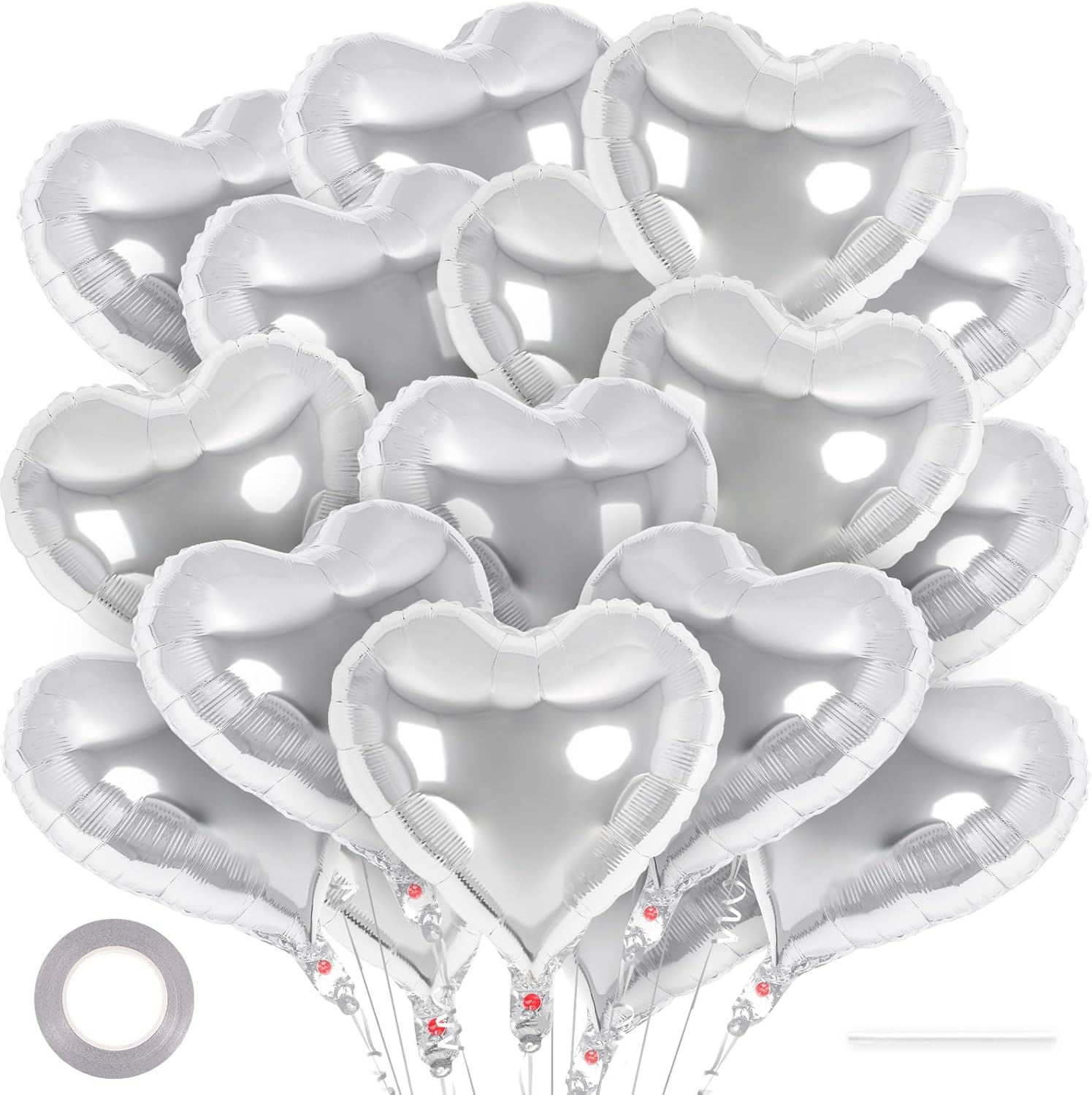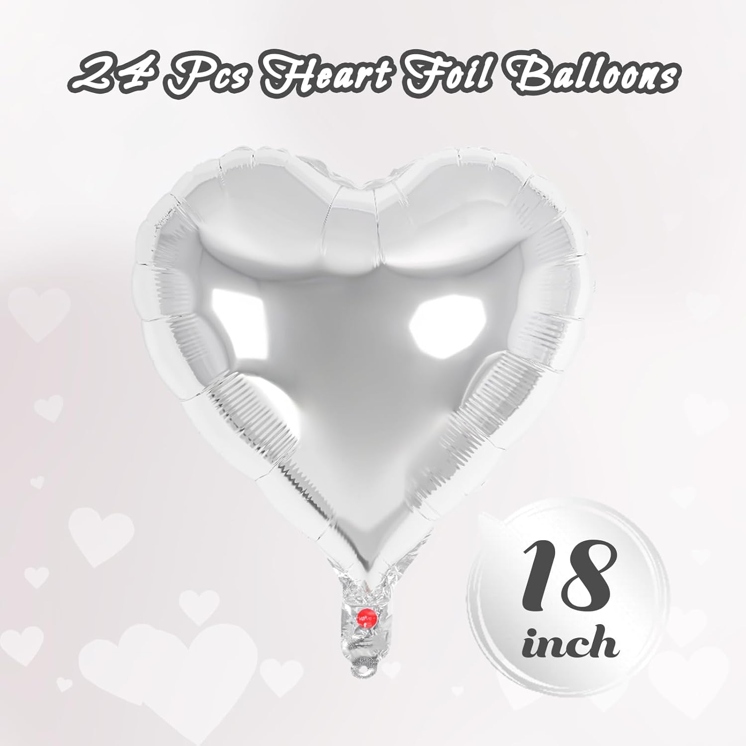 24 Pcs Silver Heart Balloons,18 inch Heart Shape Foil Balloons Love Balloons Valentine Balloons for Birthday Party Wedding Engagement Party Baby Shower Valentine Day Decorations (Silver)