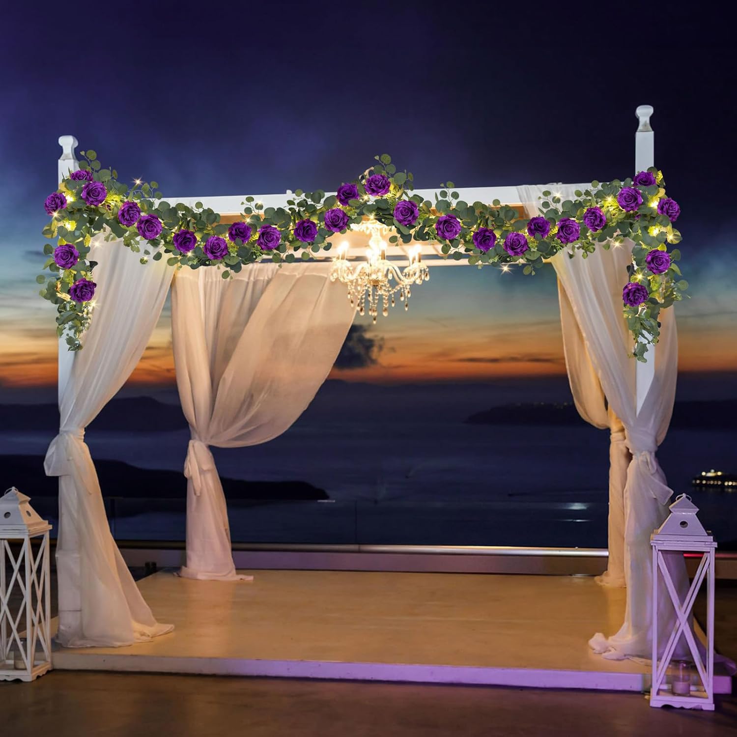 - Eucalyptus Garland with Built-in LED Lights: Transform any space into a magical setting with our 6.6FT eucalyptus garland, now upgraded with built-in led lights! Whether decorating a wedding arch, table centerpiece, fireplace mantel, backdrop, or outdoor garden fence, this rose flower garland brings timeless elegance and a touch of romance to any occasion. The versatile design allows for endless creative possibilities, making it perfect for weddings, Valentines Day, Mothers Day or seasonal celebrations