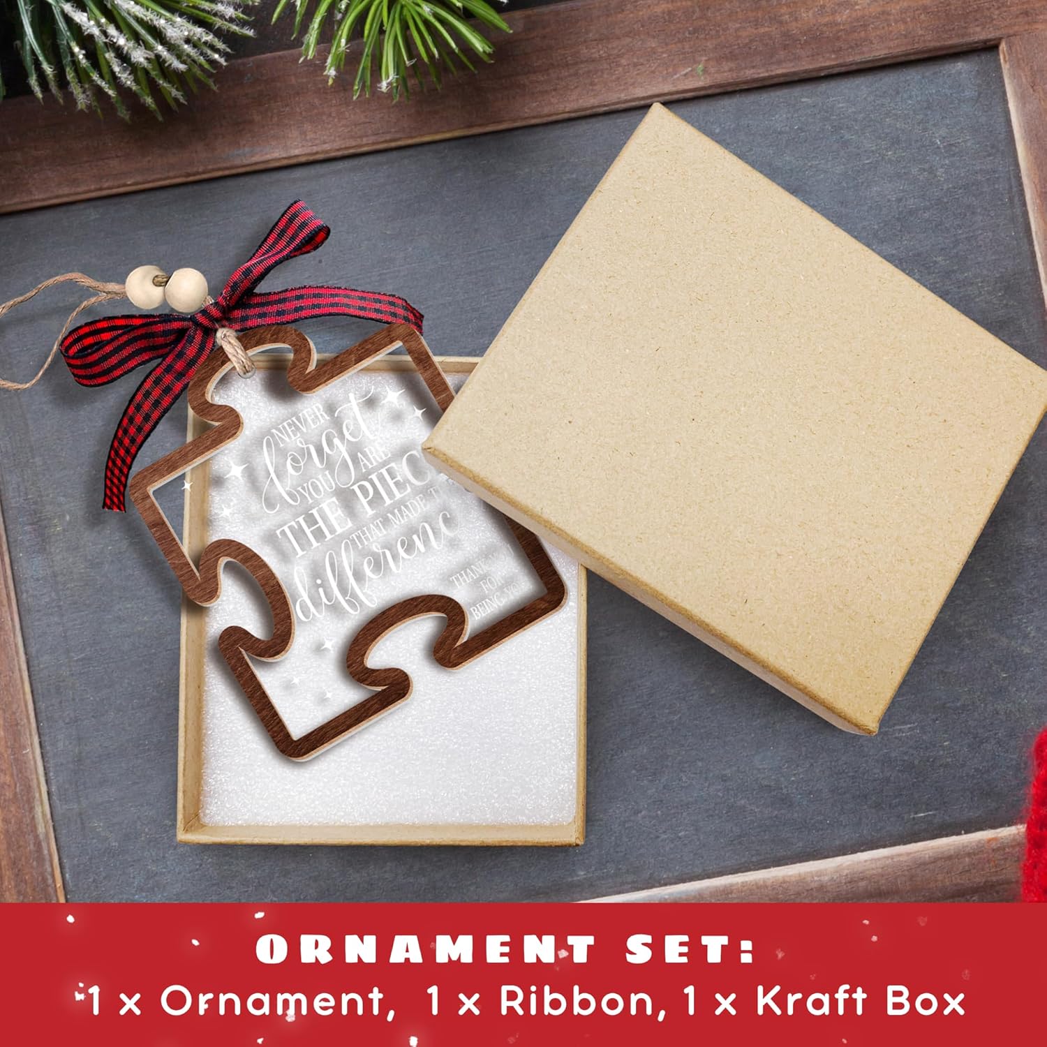 Pawzity Thank You Gifts - Never Forget You are The Piece That Made The Difference Ornaments - Appreciation Gift for Women Coworker Friend Teacher Boss Nurse - Wood Acrylic Thank You Christmas Ornament