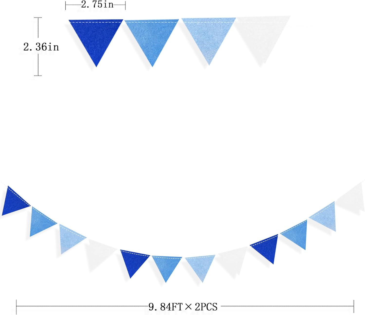 - 🔵Package Contains - 2 packs of ombre blue mini party bunting banner,Size of each flag is 2.36" × 2.75",Each mini triangle flag is 10 feet long,Total is 20 feet.Meeting daily general needs.