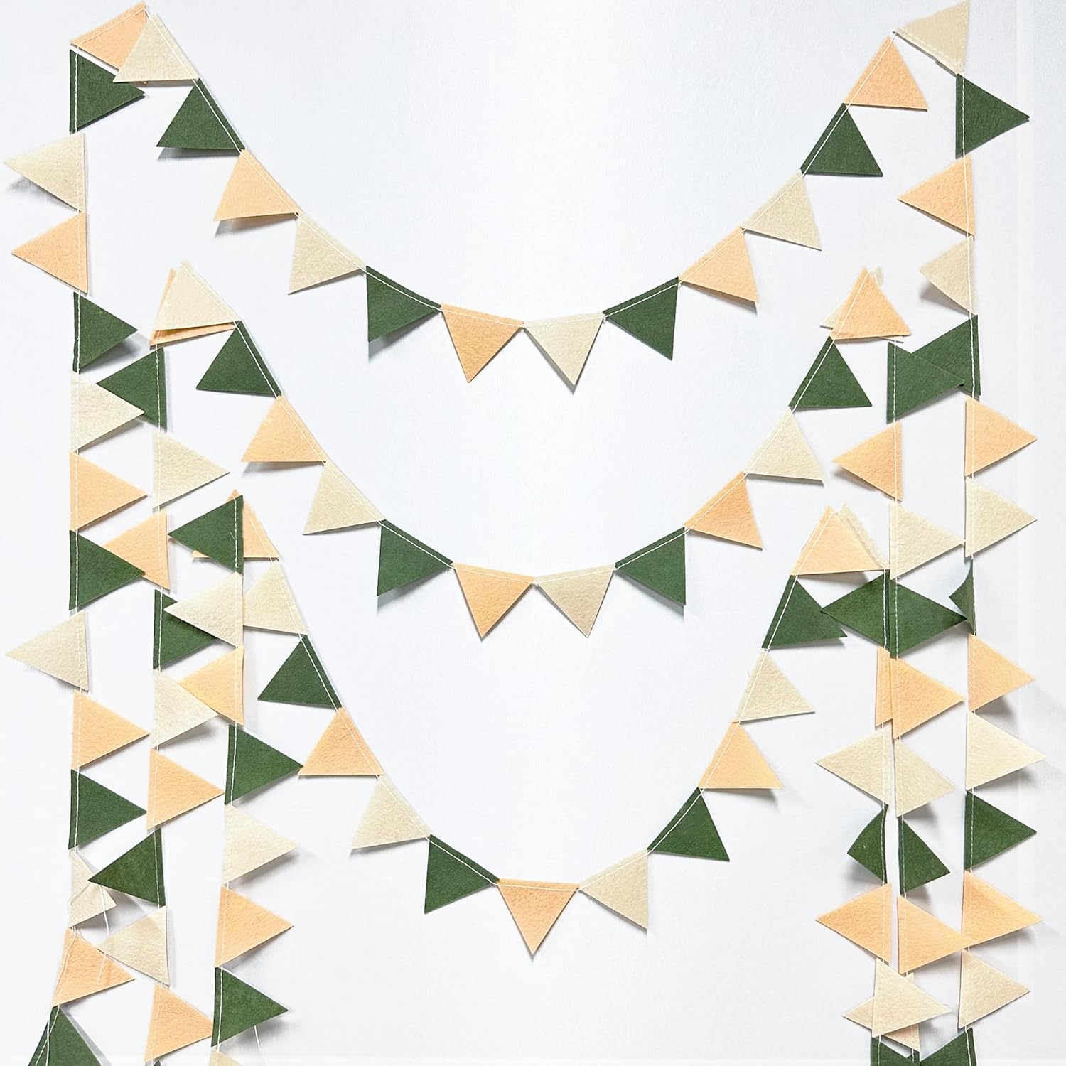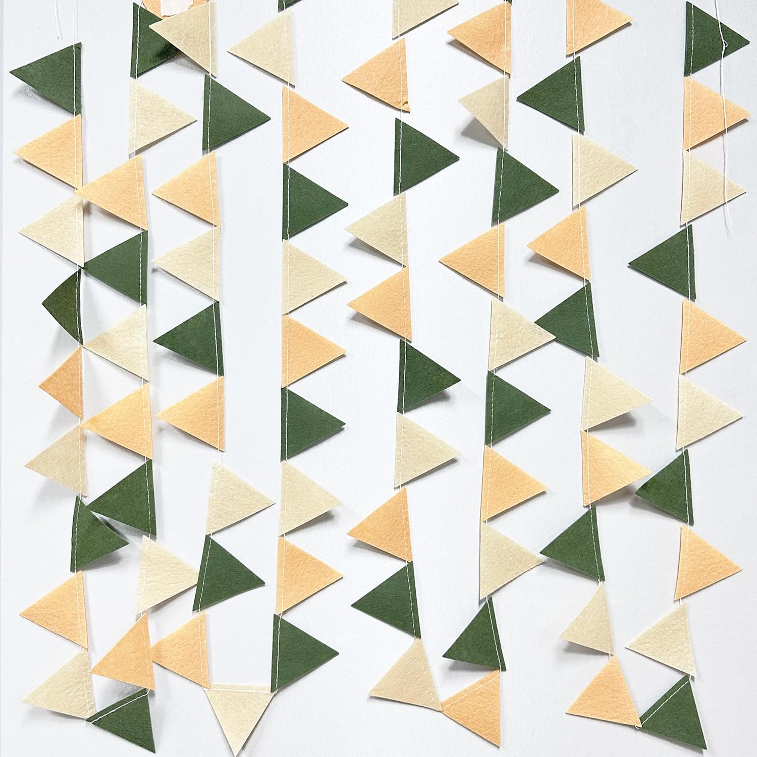 Sage Green Party Decorations Olive Green Tan Brown Cream Felt Hanging Triangle Mini Bunting Pennant Banner Flag for Safari Jungle Birthday Wedding Neutral Baby Shower Party Classroom Nursery Decor