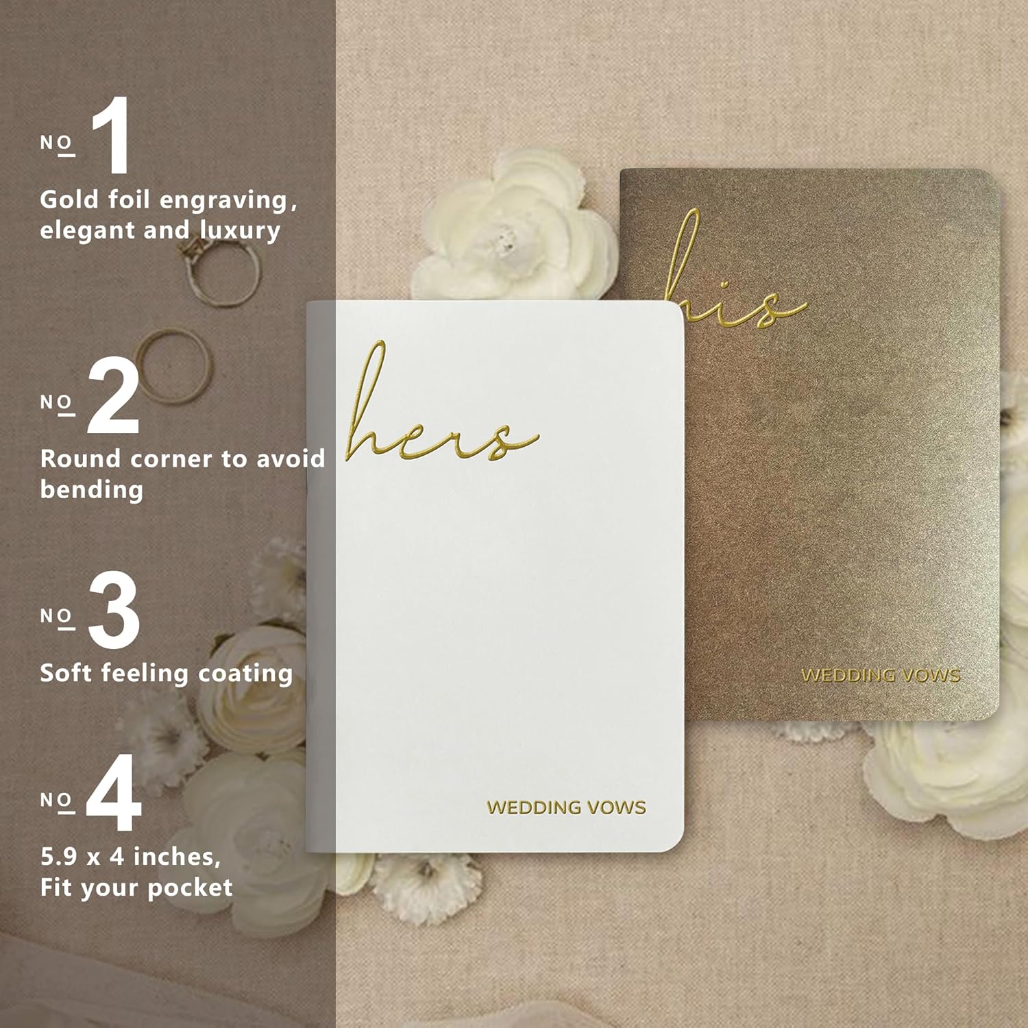 - 【Premium Quality Vow Books】The vow books his and hers has a SOFT-TOUCH cover, GOLD-FOIL engraving and 14 lined pages for the groom and bride to write their vows and thoughts about their love. High quality paper make the vow books thick and sturdy
