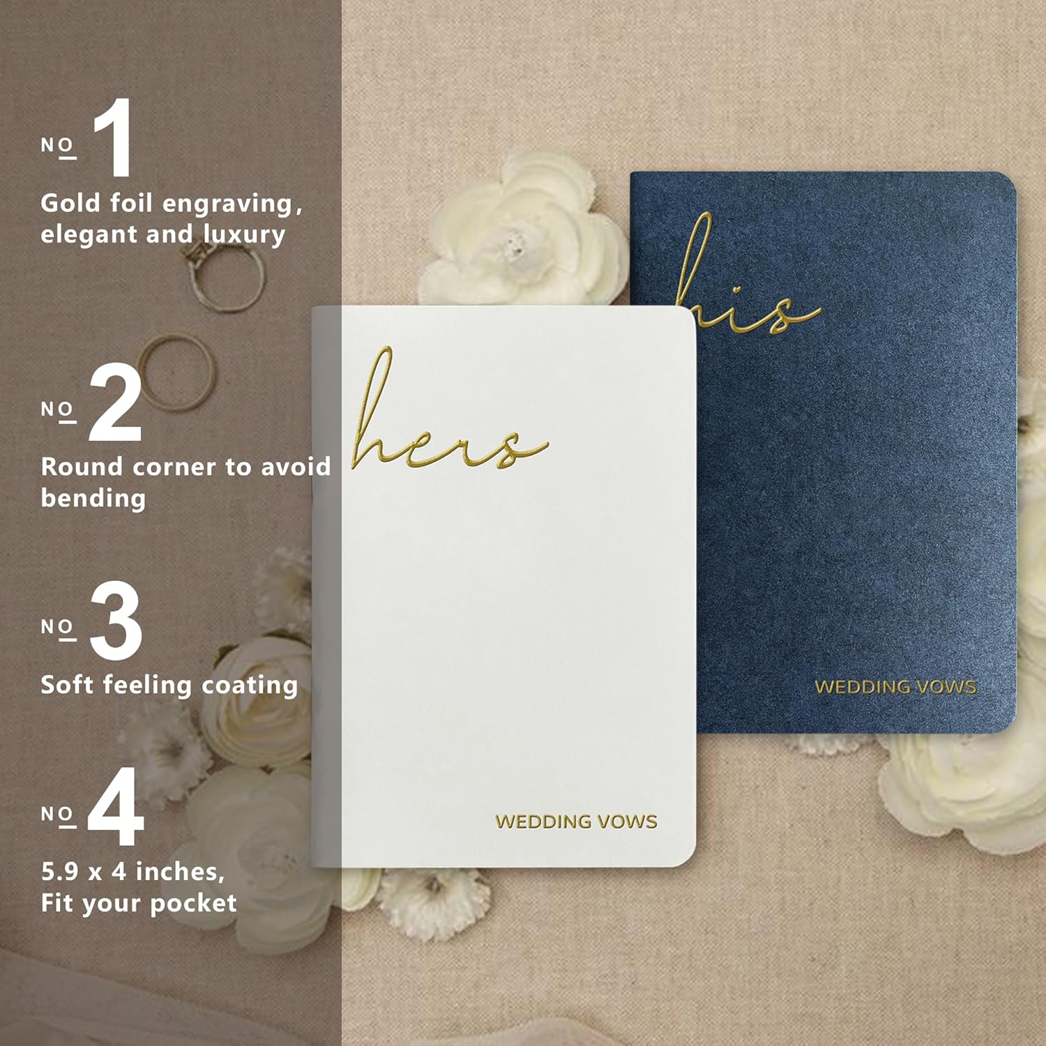 - 【Premium Quality Vow Books】The vow books his and hers has a SOFT-TOUCH cover, GOLD-FOIL engraving and 14 lined pages for the groom and bride to write their vows and thoughts about their love. High quality paper make the vow books thick and sturdy