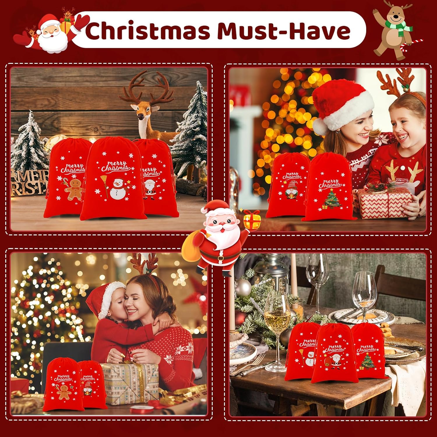 Tapleap Velvet Coth Christmas Bags with Drawstring, 50Pcs 5x7 for Wrapping Christmas Party Favors or Gifts for Friends, Small Bussiness, Children, Coworkers