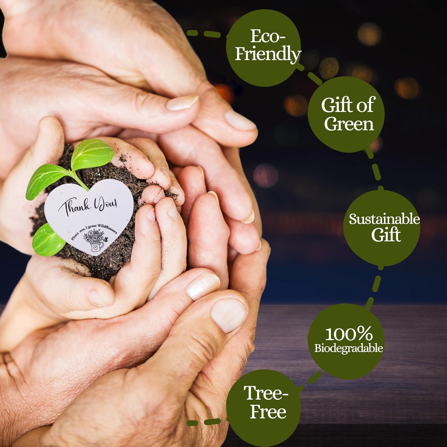 - VERSATILE USE: Our 50-pack thank you heart set is perfect for expressing gratitude, celebrating birthdays, or sending thank you to business customers. These plantable thank you cards can be used for small business supplies.