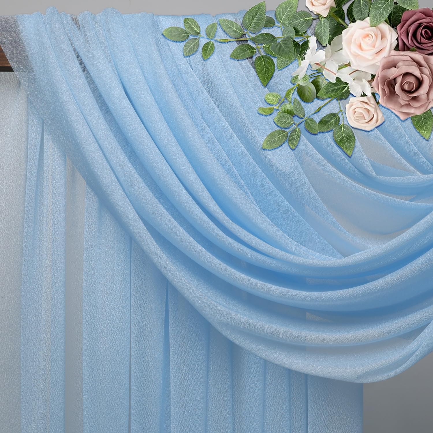 - Elegant Design: This romantic wedding drapes can be used as a decorative element for your arch backdrop. It is an excellent addition to any event decoration. Different colors and multiple quantities to choose from to match any event you want