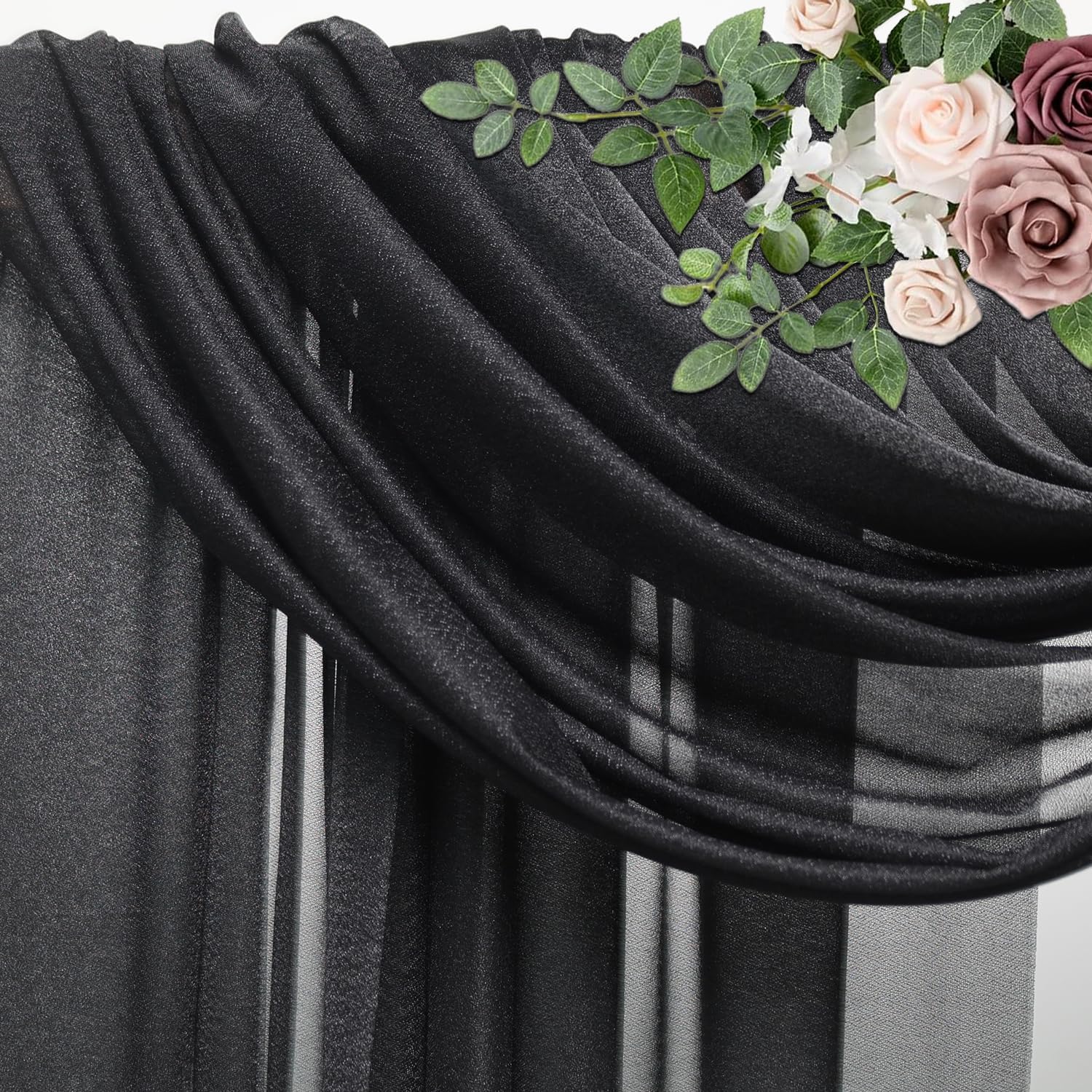 Wedding Arch Draping Fabric 6 Panels 28.7" x 20FT Black Sheer Chiffon Backdrop Drapes for Wedding Ceremony Birthday Party Bridal Shower Outdoor Decoration