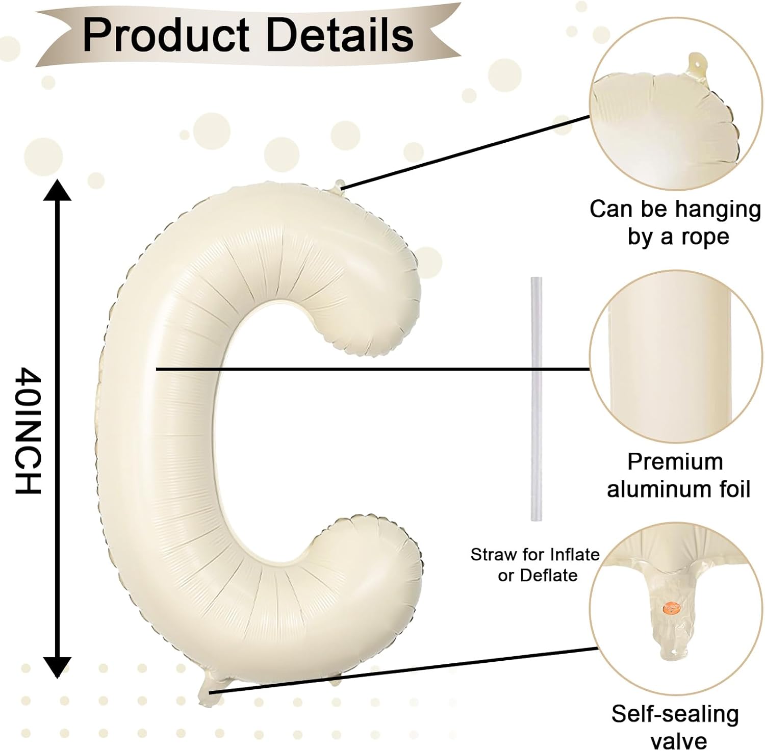 - Cream White Letter C Balloon 40 Inch: Includes 1pc giant beige "C" letter balloon and 1 straw for easy inflation and deflation. Our elegant big beige balloons are perfect for personalized parties. With 26 letters (A-Z) and numbers (1-9) available, you can mix and match to fit your theme.
