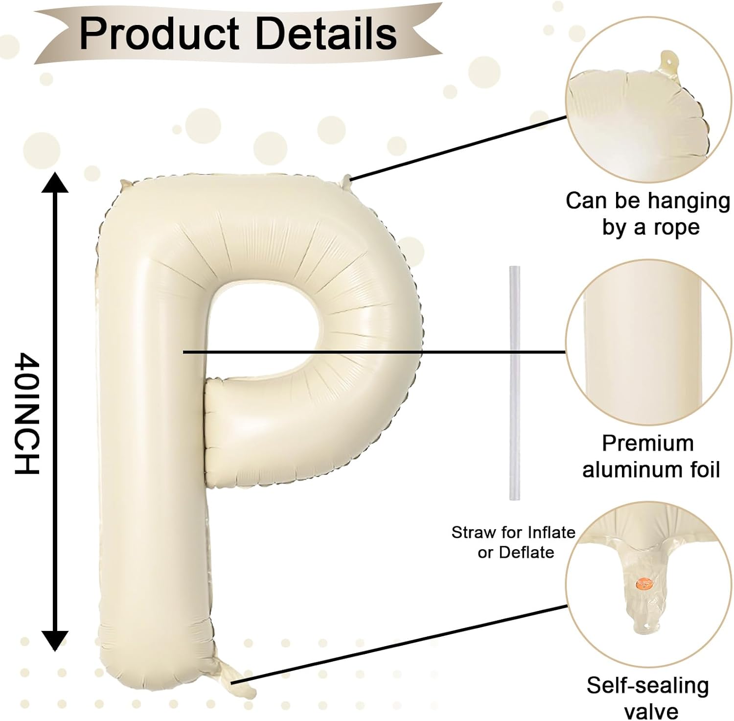 - Cream White Letter P Balloon 40 Inch: Includes 1pc giant beige "P" letter balloon and 1 straw for easy inflation and deflation. Our elegant big beige balloons are perfect for personalized parties. With 26 letters (A-Z) and numbers (1-9) available, you can mix and match to fit your theme.