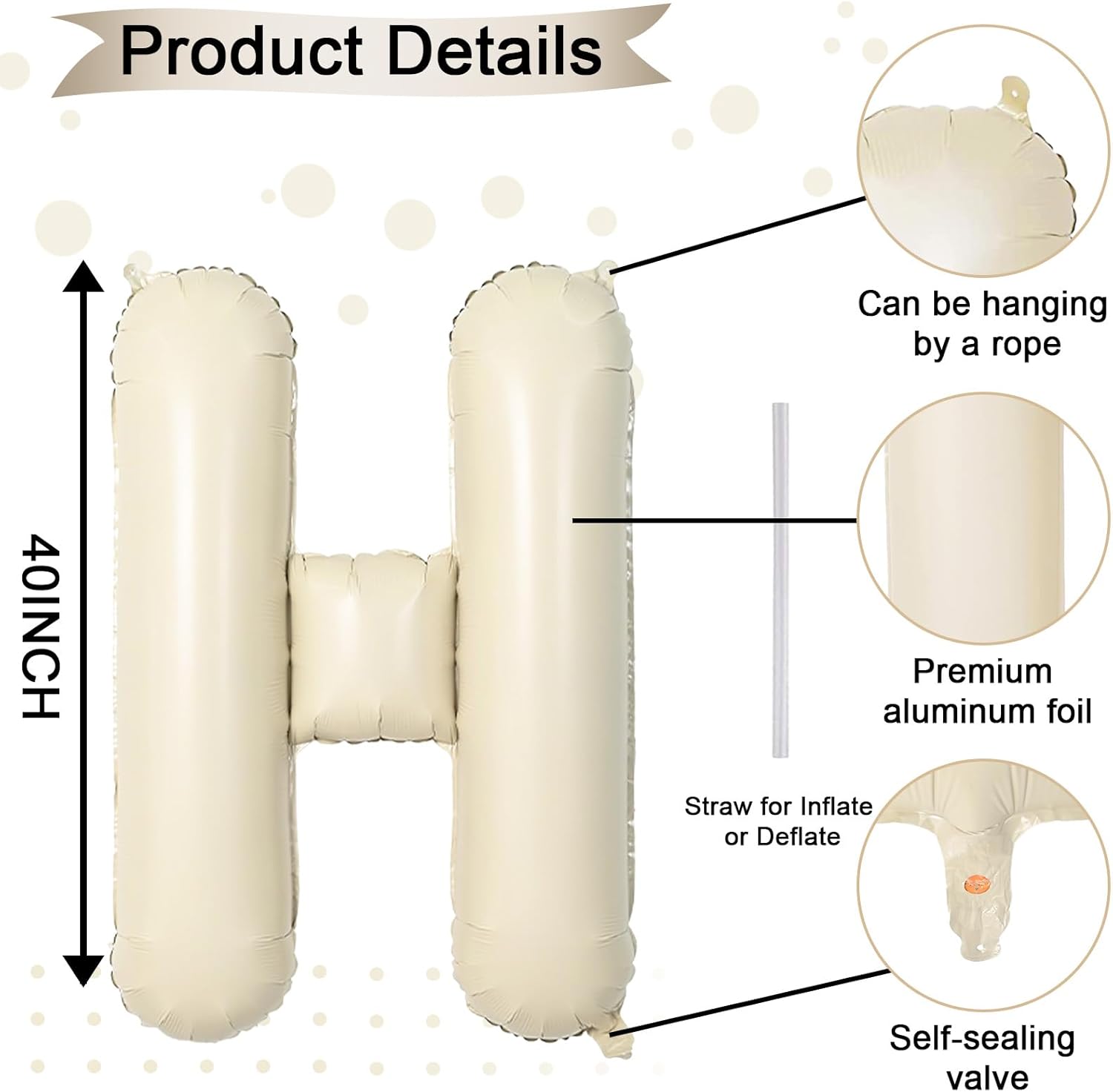 - Cream White Letter H Balloon 40 Inch: Includes 1pc giant beige "H" letter balloon and 1 straw for easy inflation and deflation. Our elegant big beige balloons are perfect for personalized parties. With 26 letters (A-Z) and numbers (1-9) available, you can mix and match to fit your theme.