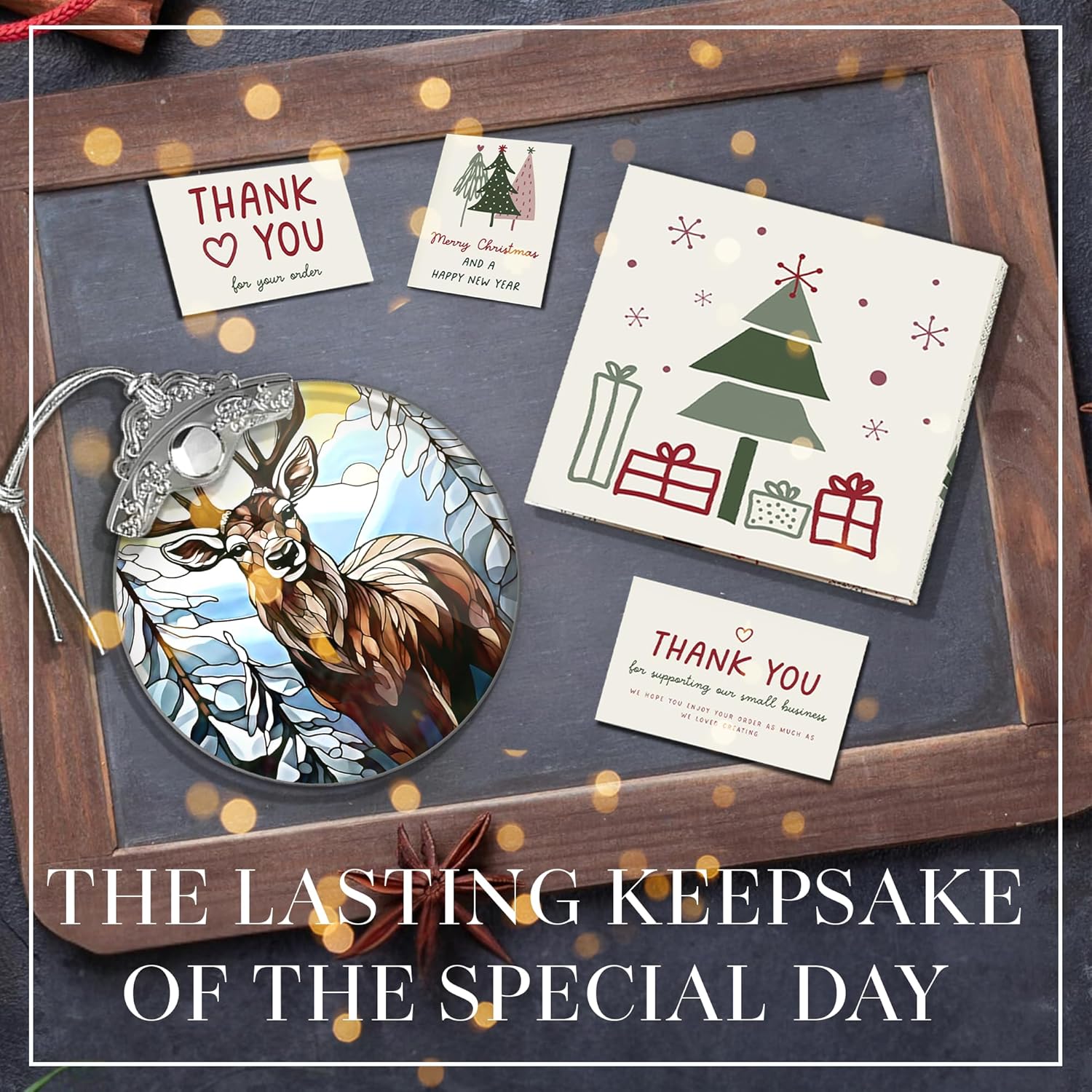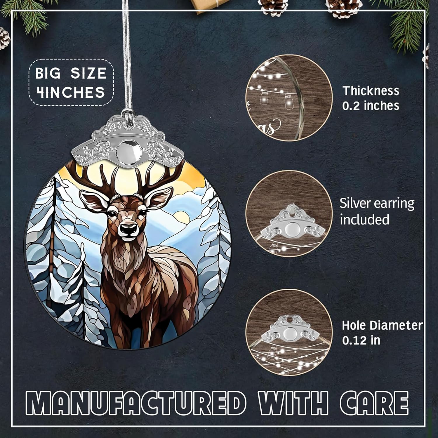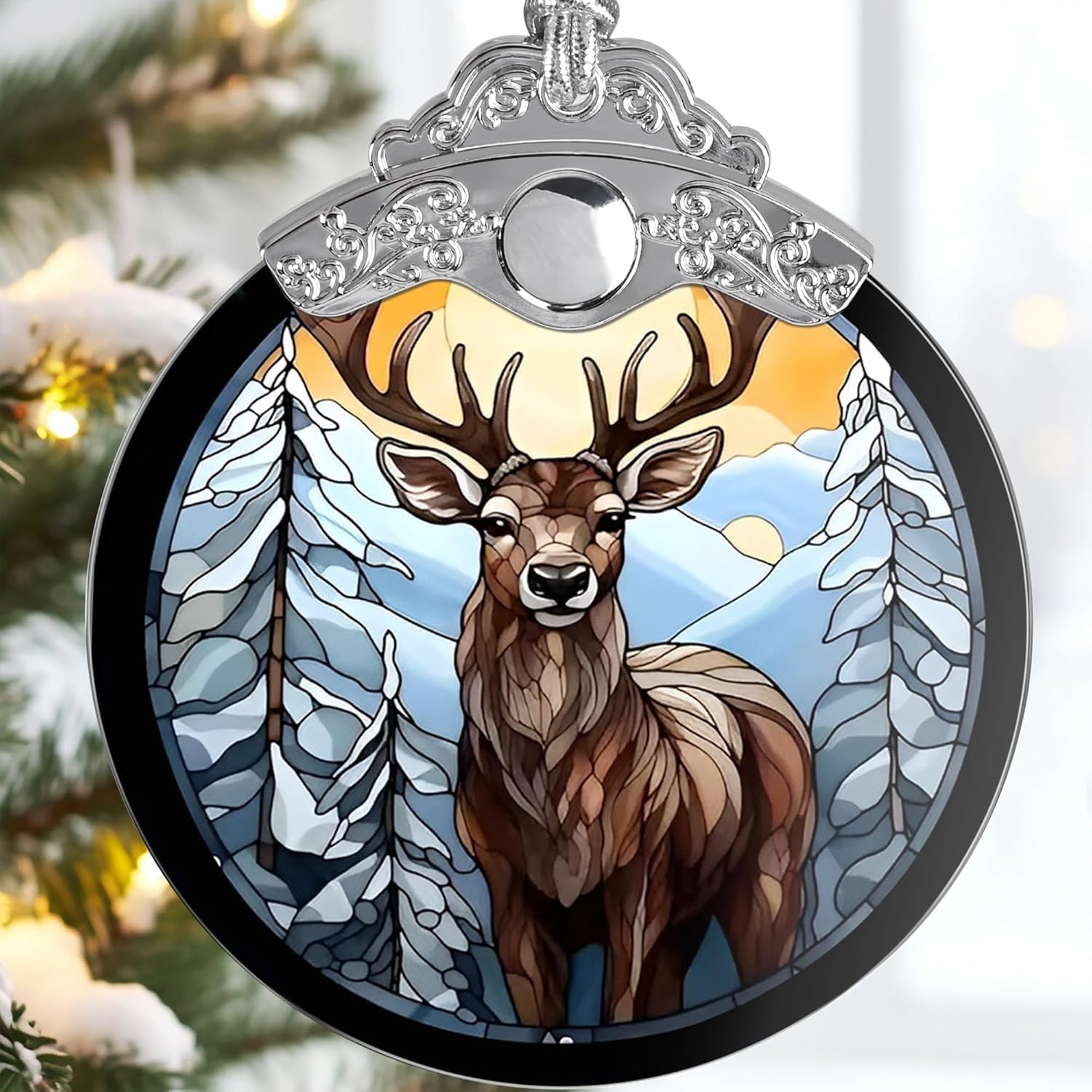 Deer Ornament 2025 – Stained Glass Look Acrylic Hanging Decor, 4 Inch Holiday Keepsake, Nature Scene Car Charm, Rustic Christmas Tree Decoration, Gift for Wildlife Lovers