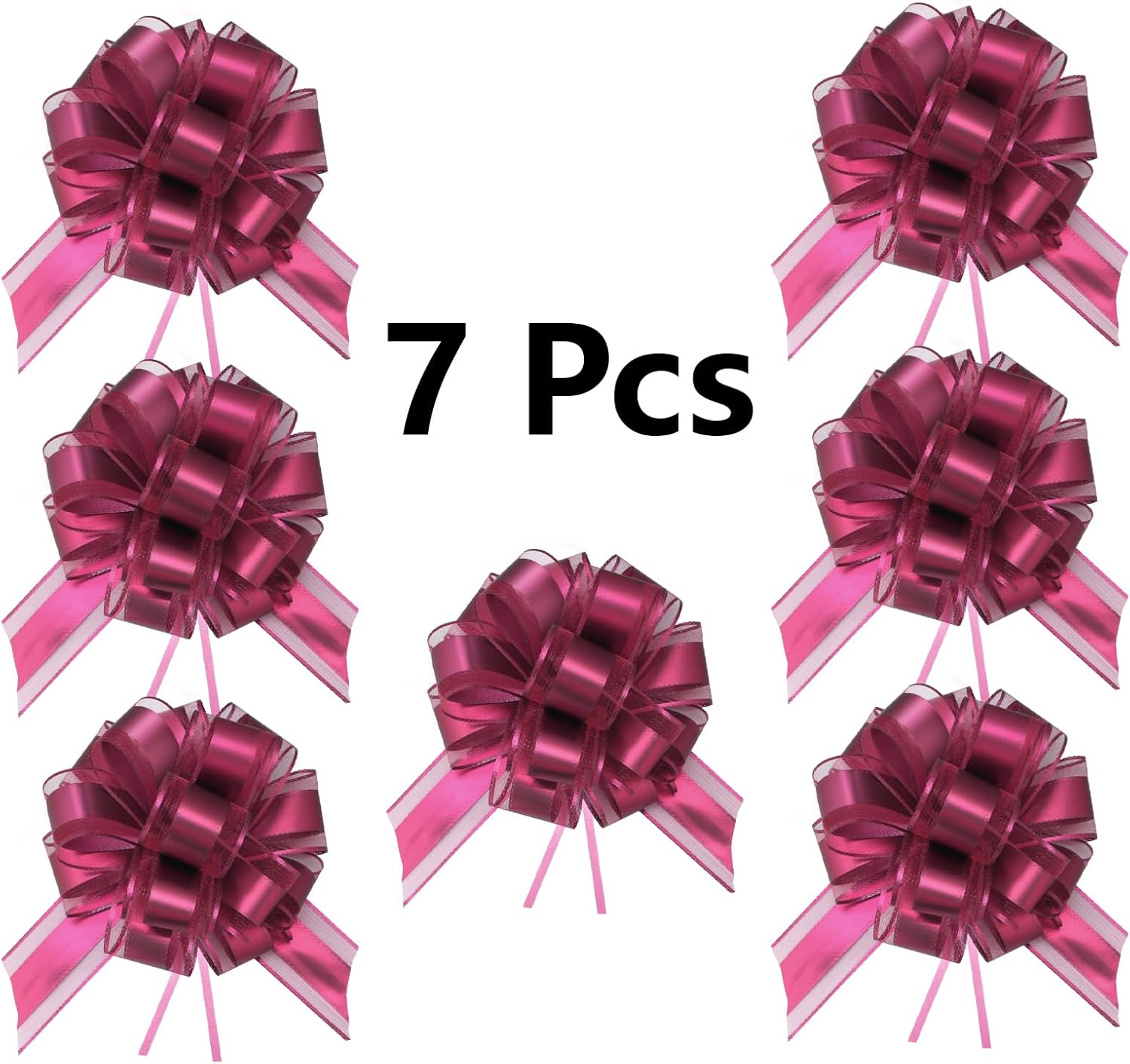7 Pieces Large Pull Bows, 6 inche, Big Bow for Gift Wrapping, Christmas Party Birthday Gift, Wedding Baskets,Valentine's Day Gift Decorations, Flower Decoration (Wine red)