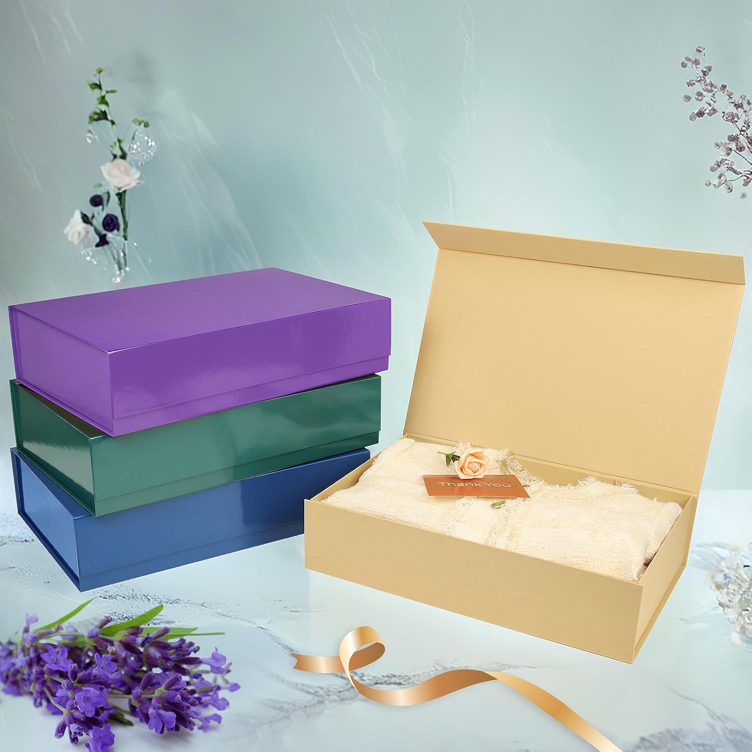 - Design: Concealed magnetic closure design powerful magnet keeps the lid closed even after repeated usage. This magnetic gift box is durable enough to be reused and easy to clean, only need wiping gently with a dry cloth to restore the brightness