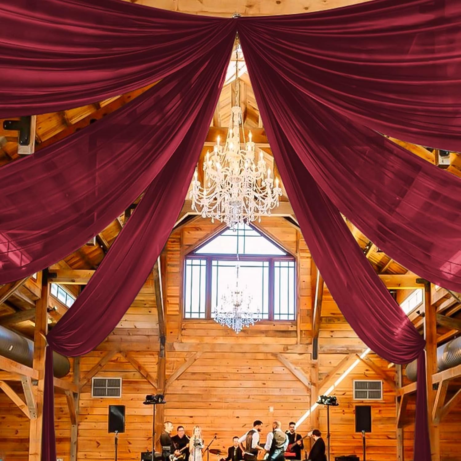 - 【Burgundy Ceiling Curtain Easy to Install】There is a 4 inches pocket for rod or pole entry at the top and bottom of each panel creating beautiful draping. Entry at the top and bottom of each panel creating beautiful and natural draping. Sheer arch draping fabric are good choice to decorate your party and event. Different hanging methods will bring you various visual effects.
