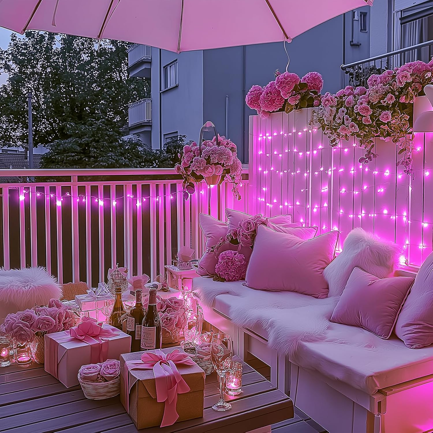 - 【Remote Control Pink String Lights for Outside】Our upgraded string lights come with a wireless remote control that offers 8 lighting modes, dimming options including 4 adjustable brightness levels, and timer functionality.