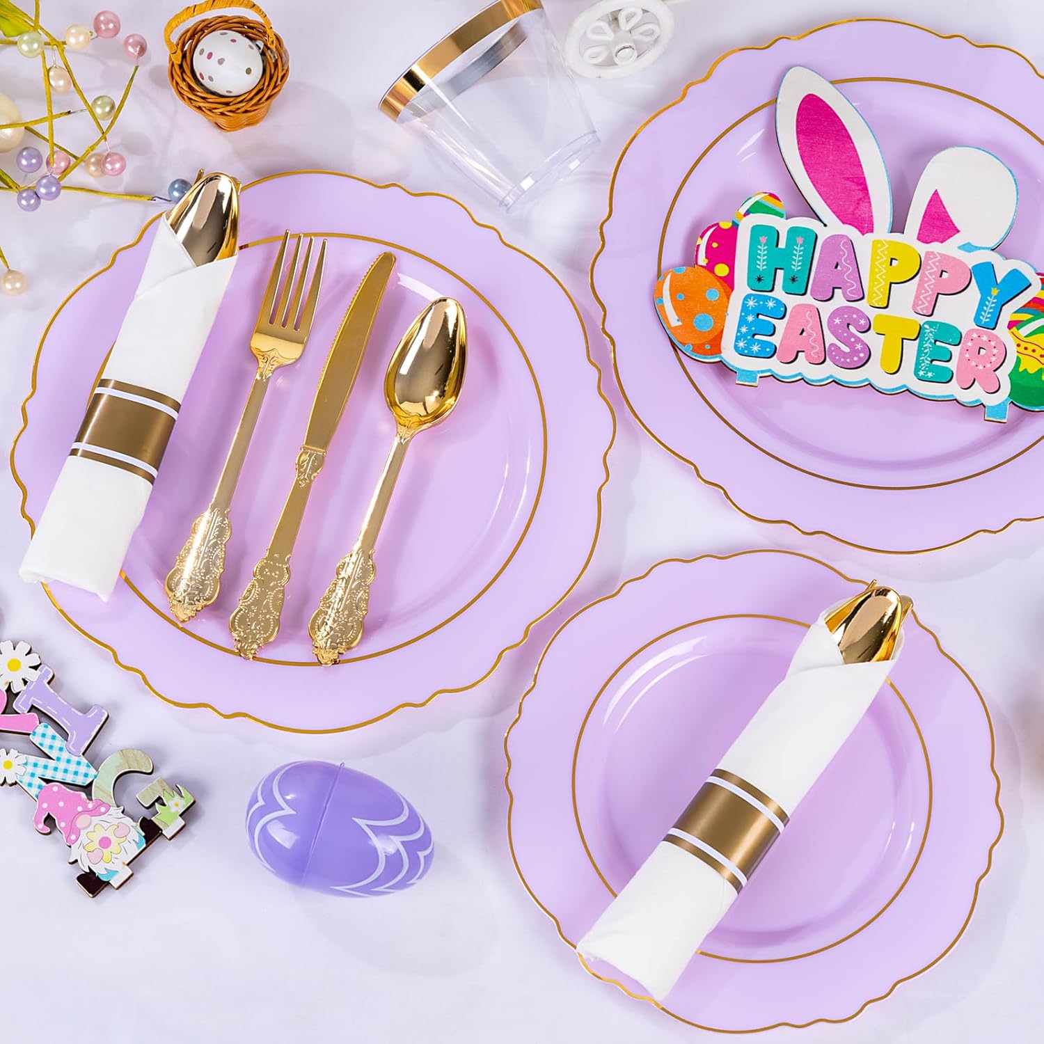 - EASY TO CLEAN - Lavender plates features a gold-rimmed design that adds an elegant flavor, and purple disposable plates are easy to use No need to wash them after use, easily solving the cleaning problem and purple and gold plates letting you focus on enjoying every moment of the event