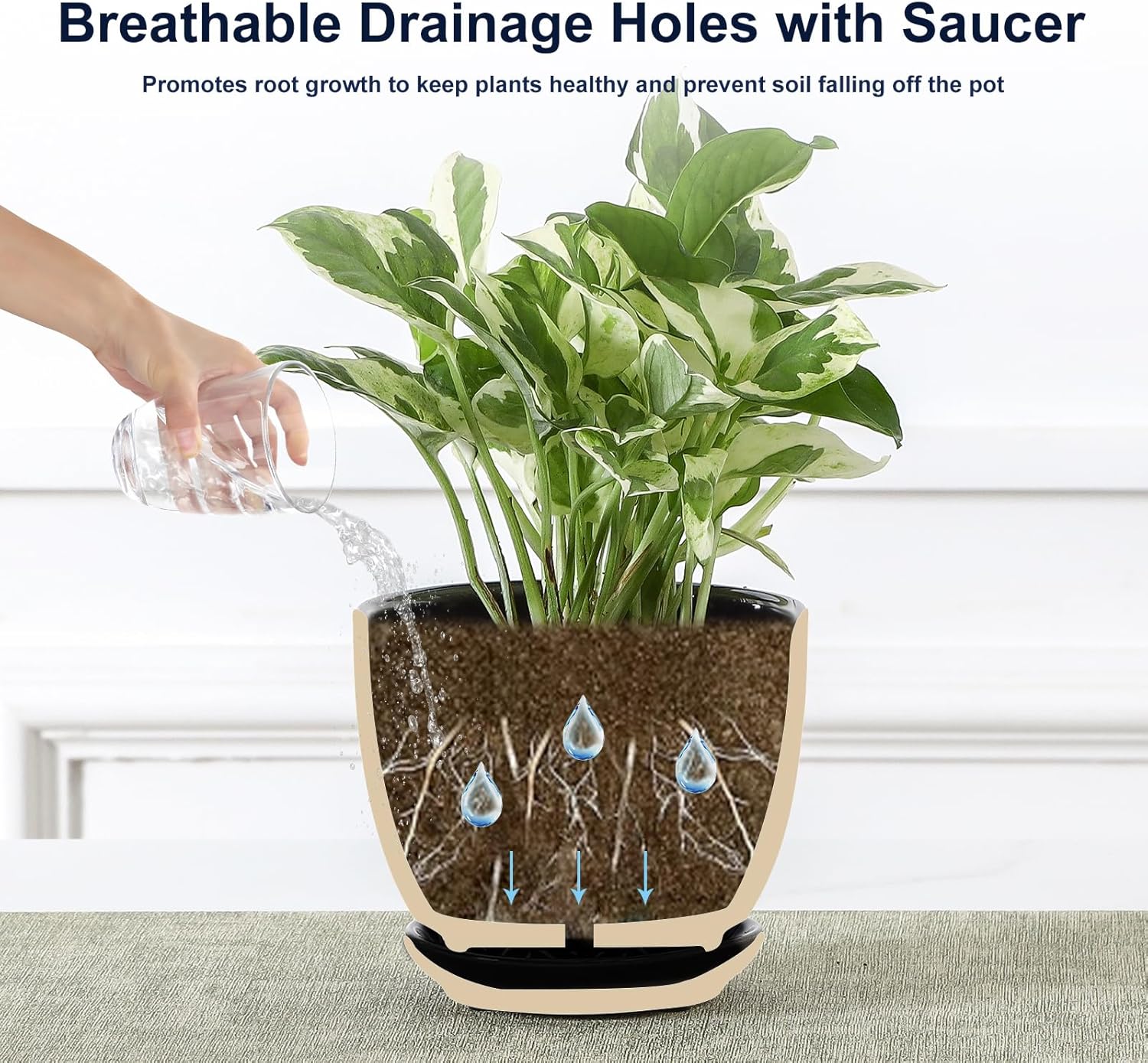 - Minimalist Design of Houseplant Pot: These indoor planters are designed with four different embossed patterns that make it easy to mix and match plants to create a elegant look, decorating windowsill, tabletop, shelve, kitchen, living room, bedroom, office, garden and patio. These flowerpots have a minimalist design and combination solid color glaze that blend seamlessly with a various of home styles