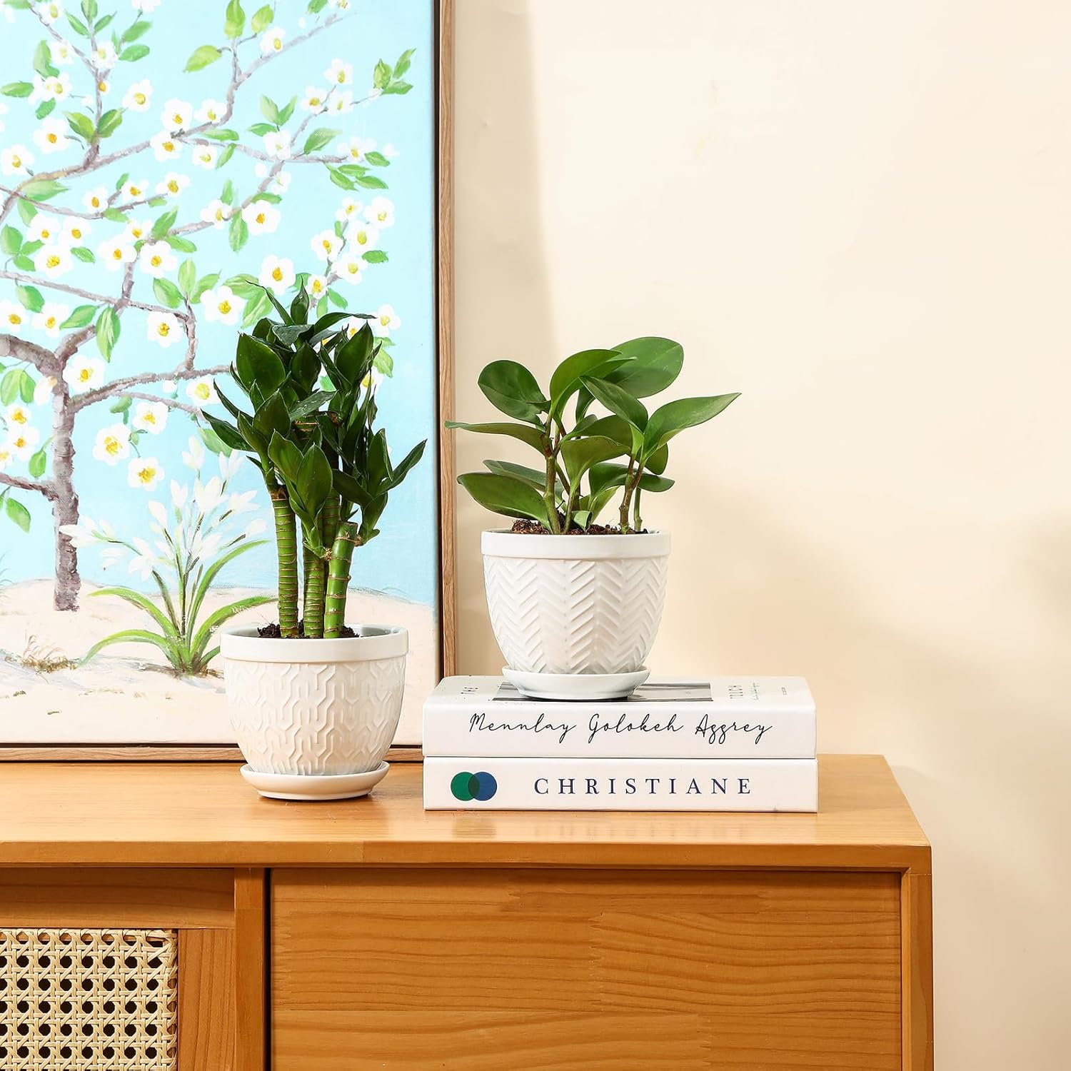 - Minimalist Design of Houseplant Pot: These indoor planters are designed with four different embossed patterns that make it easy to mix and match plants to create a elegant look, decorating windowsill, tabletop, shelve, kitchen, living room, bedroom, office, garden and patio. These flowerpots have a minimalist design and combination solid color glaze that blend seamlessly with a various of home styles