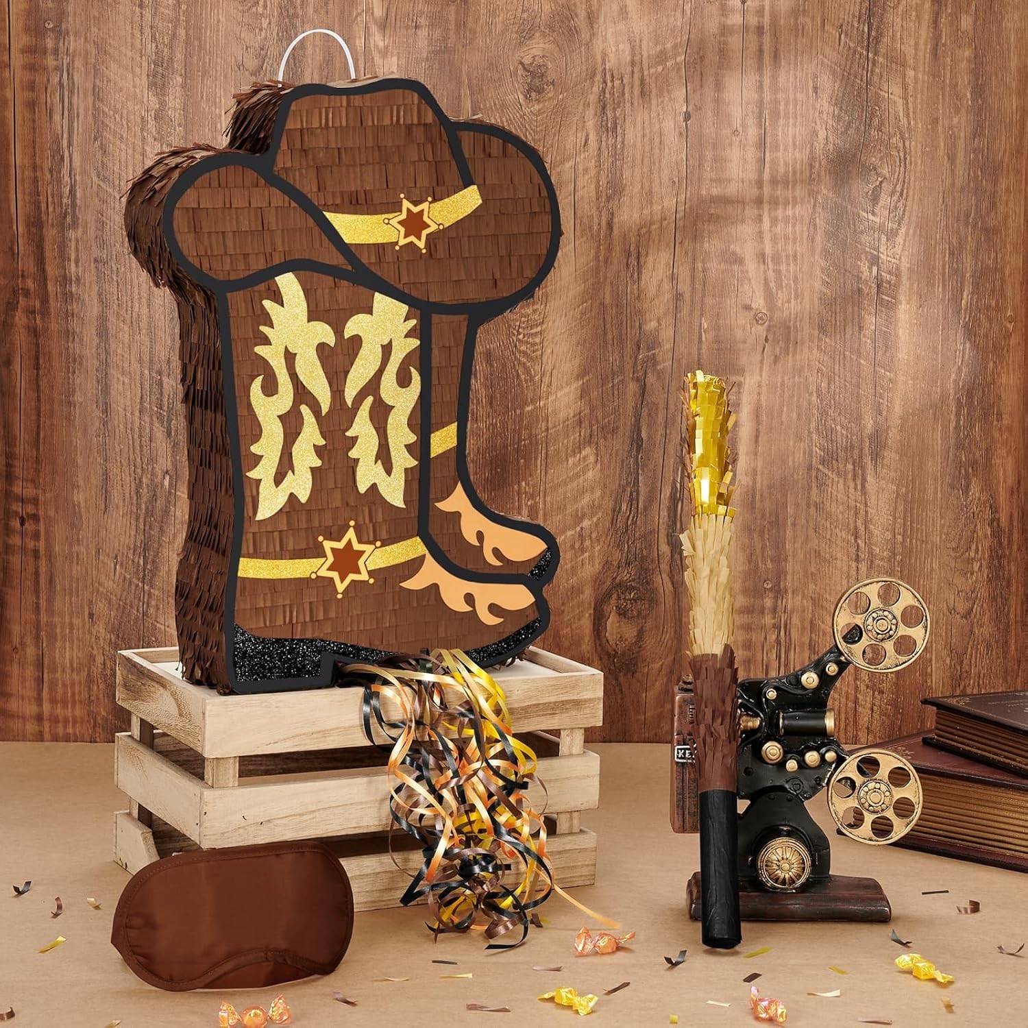 WERNNSAI Western Cowgirl Boot Piñata - Cowboy Hat Pinata Game Western World Theme Party Decorations for Adults Kids Birthday Farm Horse Rodeo Party Supplies with Bat Blindfold