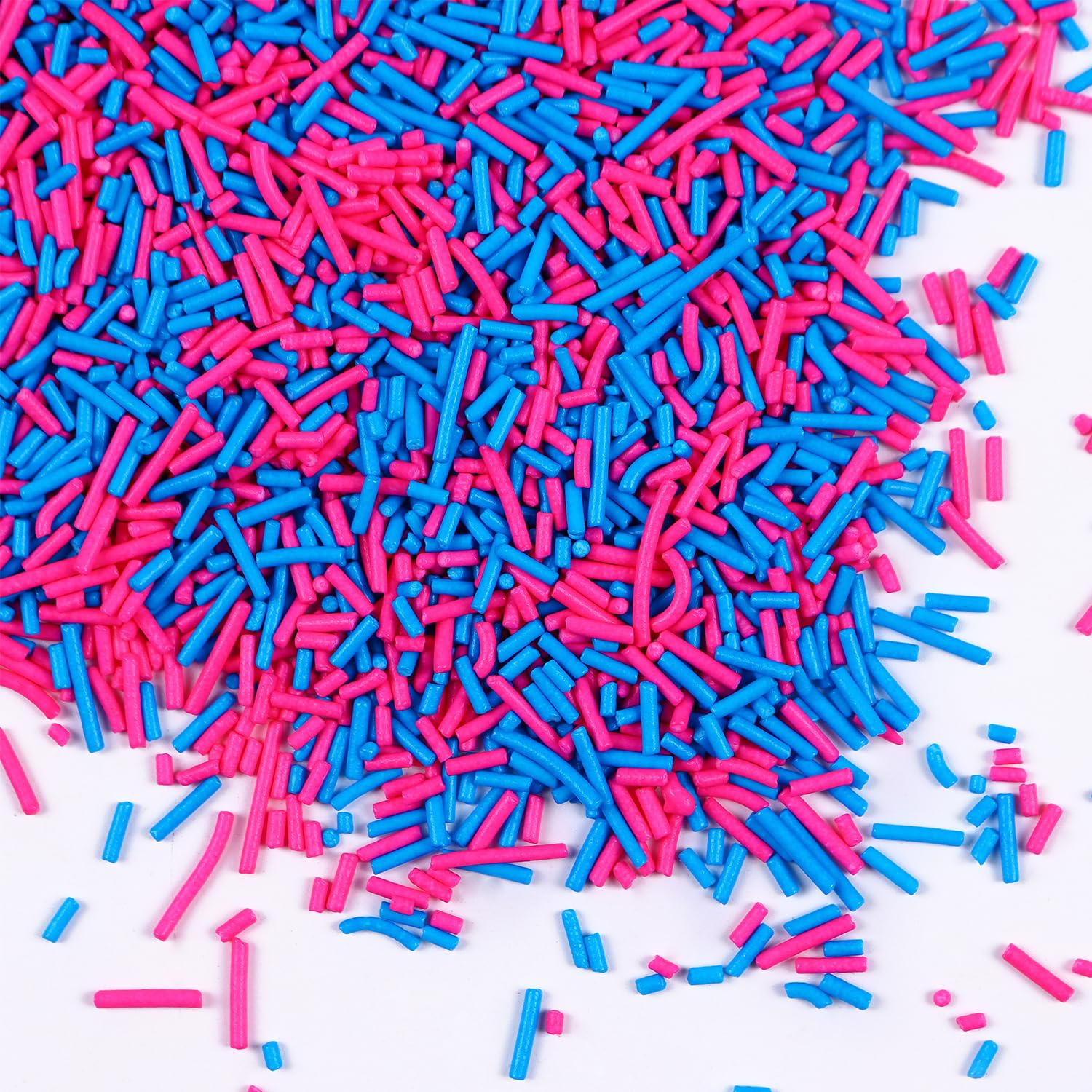 - Pink and Blue Jimmies Sprinkles: A bottle of pink sprinkles and blue sprinkles mix(120g/4.23oz), whether it's cakes, cupcakes, cookies, ice cream, cake pops, brownies, or any dessert you can dream of; our edible jimmies sprinkles are your go-to for that extra dash of cheer