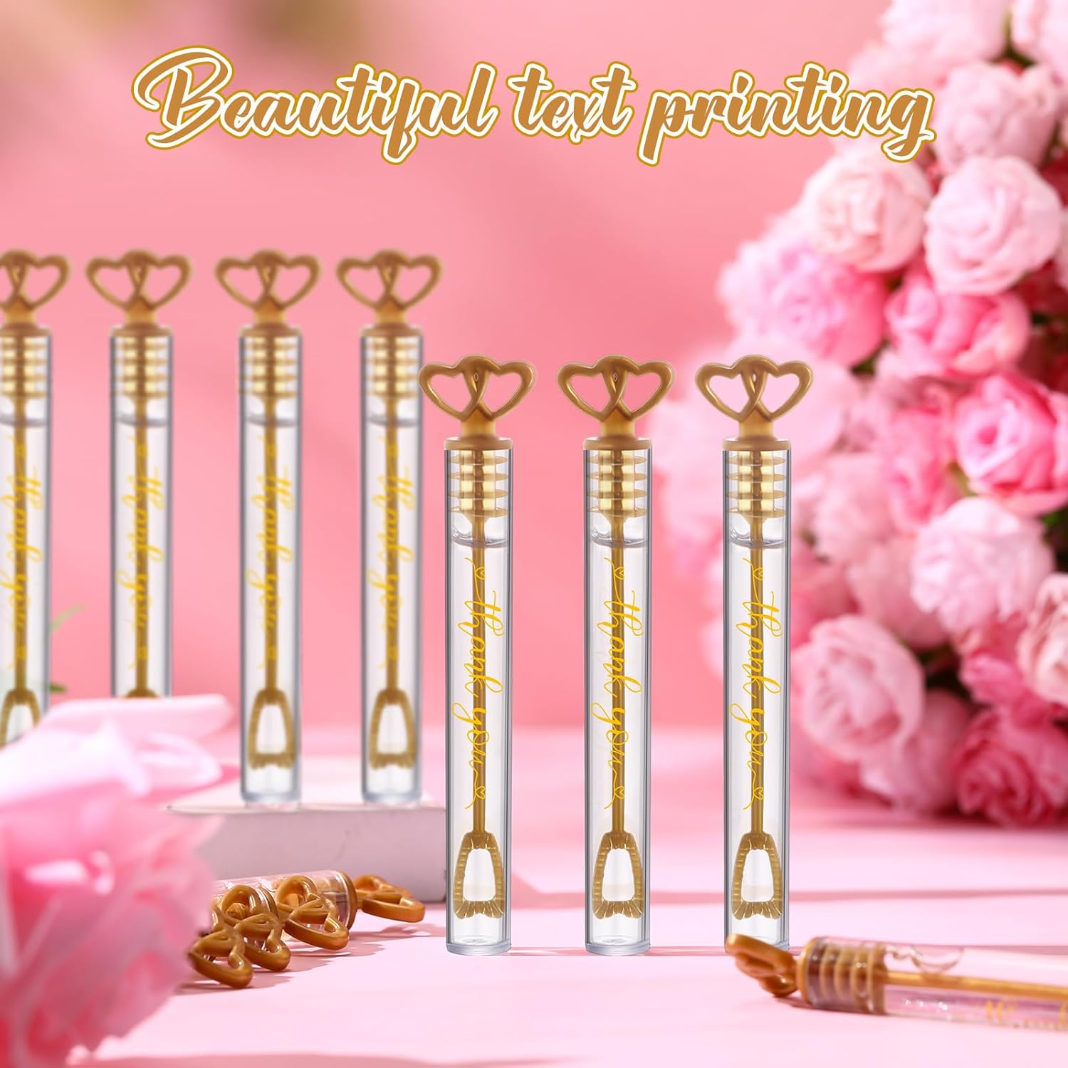 - Romantic Double Heart Design: our bubble tubes feature a charming double heart top design with the words "thank you" in the bubble tubes; Further sealed with a rubber stopper, these bubble tubes demonstrate a thoughtfulness that ensures the bubble solution does not leak during transportation and your guests' experience is pleasant