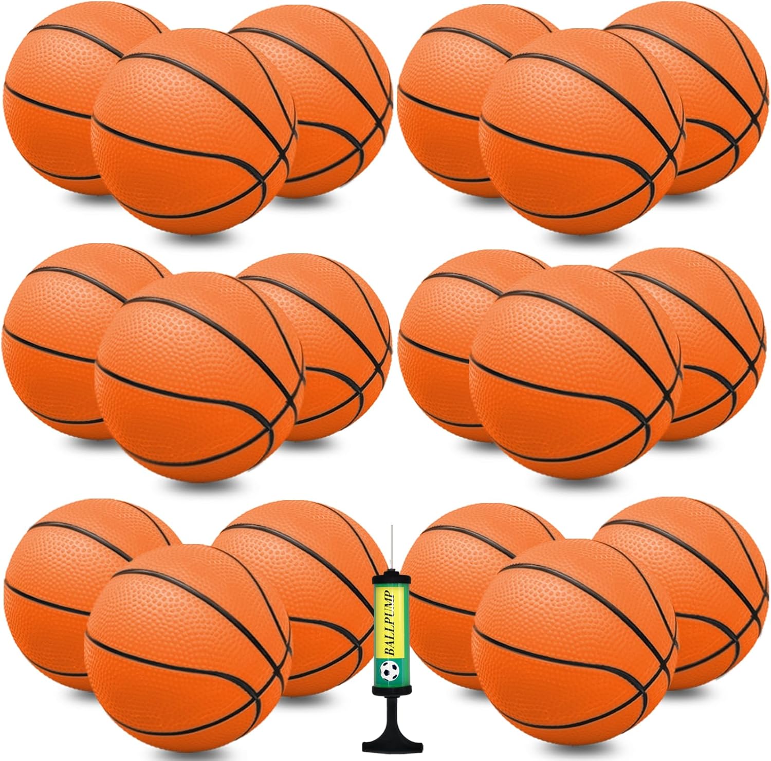 - Inflatable Mini Basketball Bulks: Come with 18 PCS 5 inch small basketball, 1 x Handy Air Pump. 5 inch small basketball which enables the kids to have more choice to enjoy a super fun basketball game and improve the kids interest about basketball sports,perfect for making a shot with basketball hoops. Also a perfect party favor for basketball party, kid-parent party. Great recreation toys for office, dorm, home and a perfect gift for basketball lovers