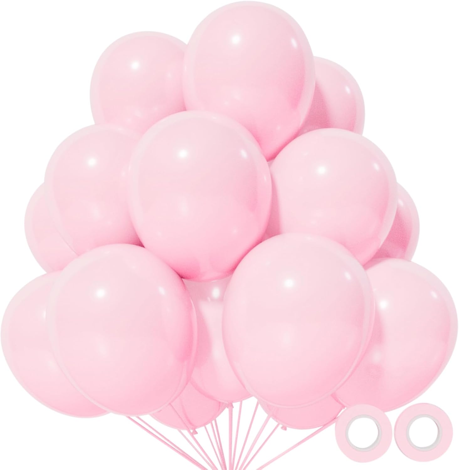 - Order us you will get 110pcs 12 inch light pink baloons and 2 rolls of ribbons in random colors.