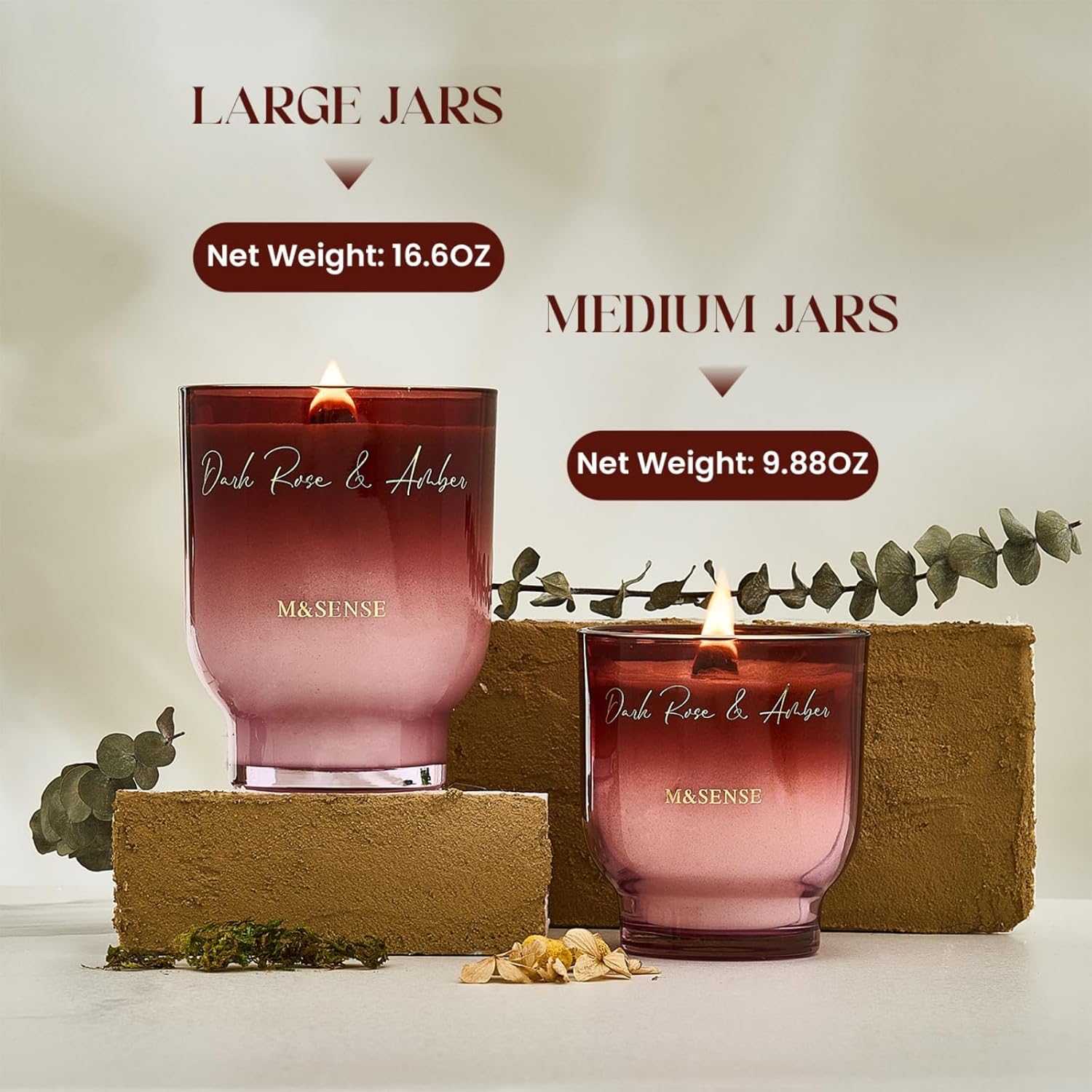 M&SENSE 16.6oz Natural Soy Large Jar Candle with Wooden Wick | Dark Rose Amber Scent | 95-Hour Burn & Long-Lasting Burn | Housewarming Gift for Men and Women