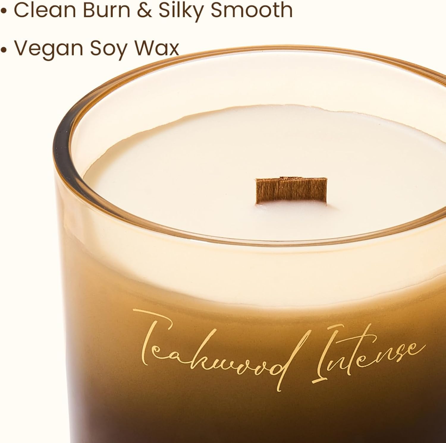 M&SENSE 16.6oz Natural Soy Large Jar Candle with Wooden Wick | Teakwood Intense Scent | 95-Hour Burn & Long-Lasting Burn | Housewarming Gift for Men and Women
