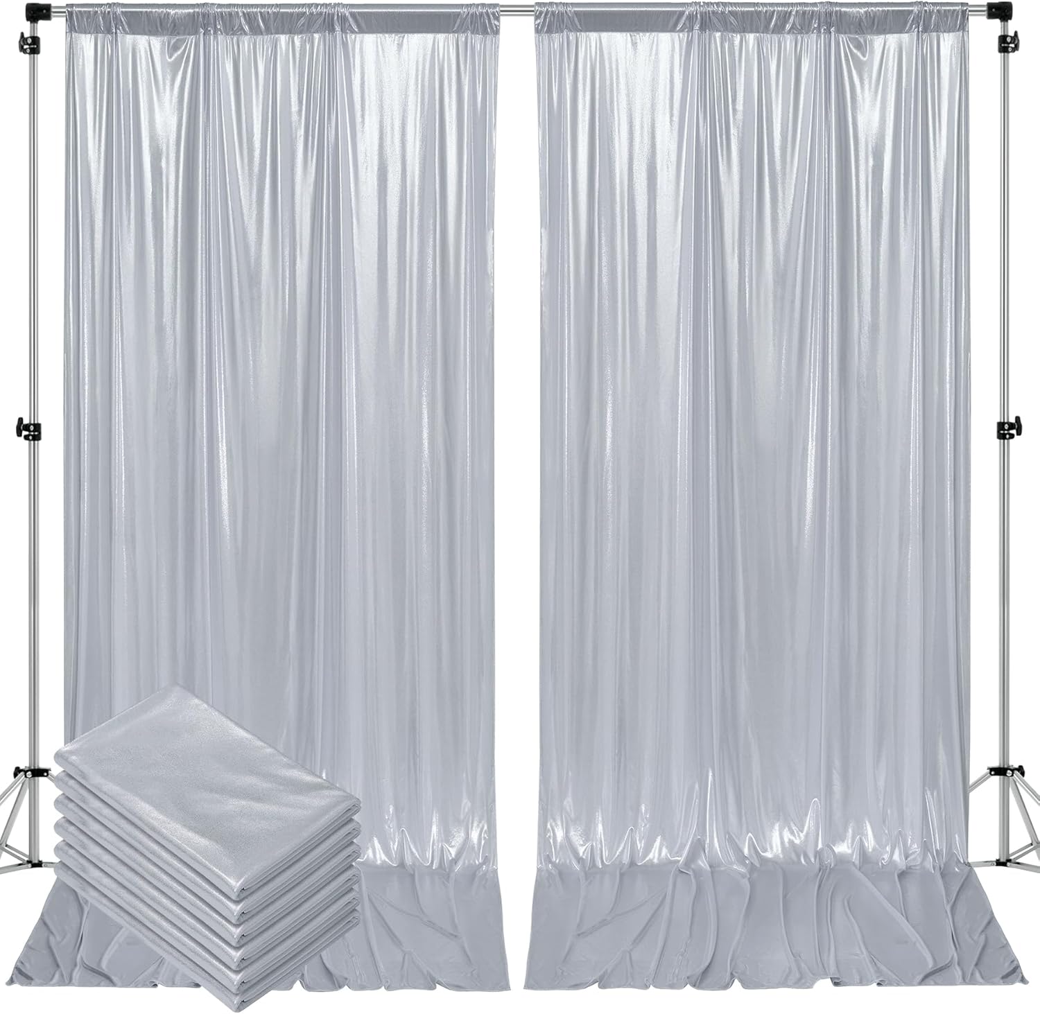 - 10FT Silver Sequin Background Drapes: Wrinkle Free, Durable, Reusable. The Silver photography drapes are wrinkle-free, soft touch feeling. You can use them with our another style of backdrop which has kinds of colors for choose.