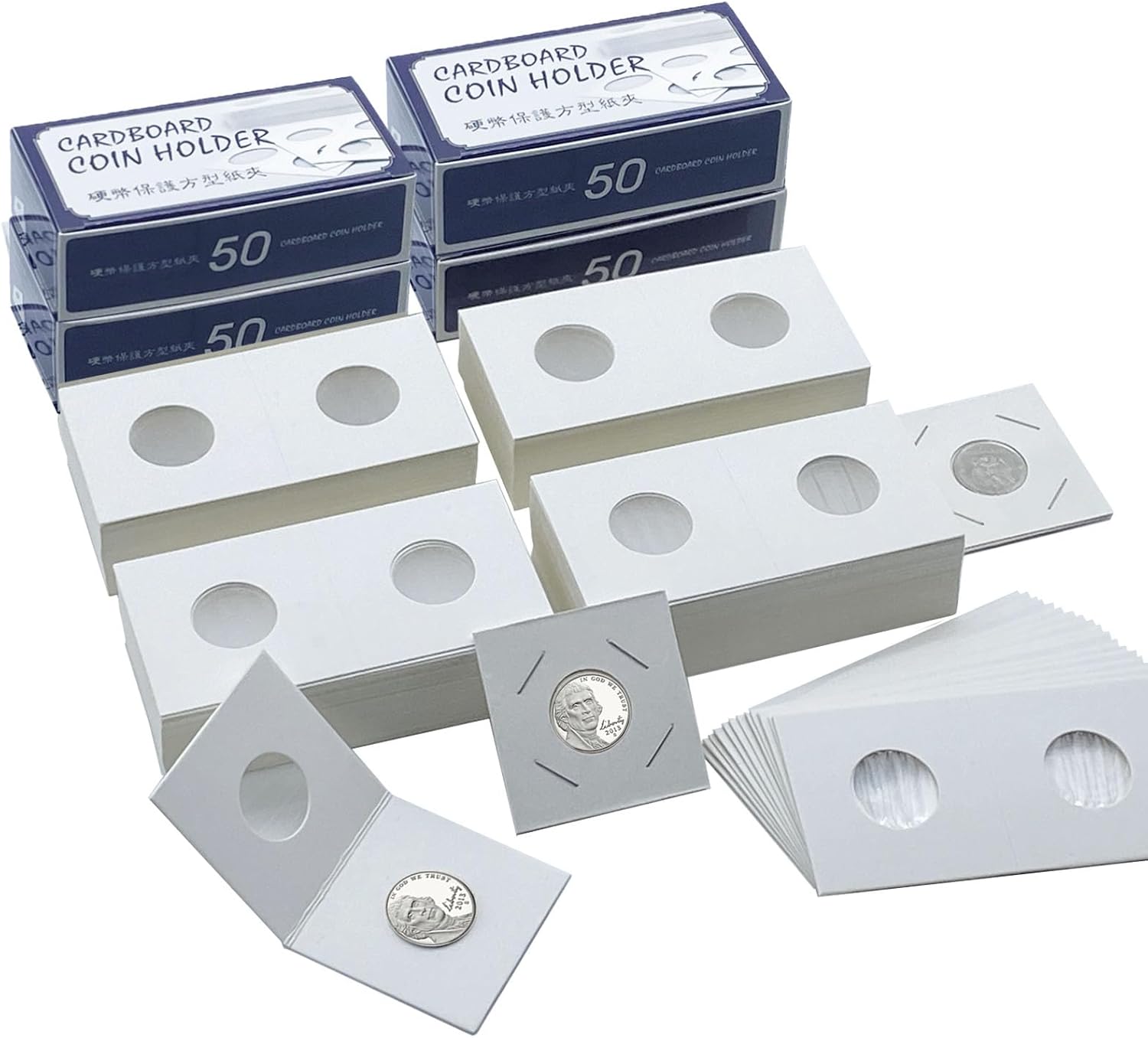- CARDBOARD COIN FLIPS: 200 Pieces 2" x 2" coin holders , A box of 50 pieces. Coin collection supplies size: 23mm / 0.9 inch, which are thicker and more rigid then most flips on the market