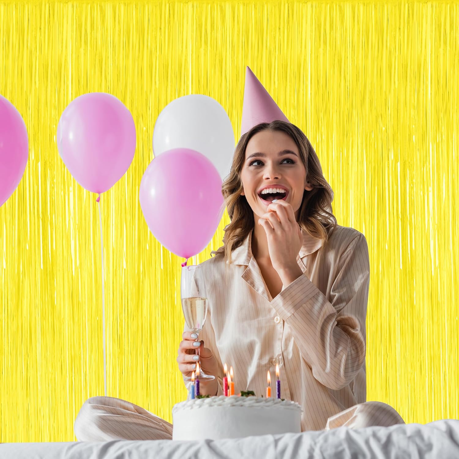 2 Pack Backdrop Curtains, 3.28 FT x 7.05 FT Yellow Color Tinsel Backdrop, Metallic Foil Backdrop Fringe Curtains Party Streamer, Party Decorations Photo Backdrop for Birthday