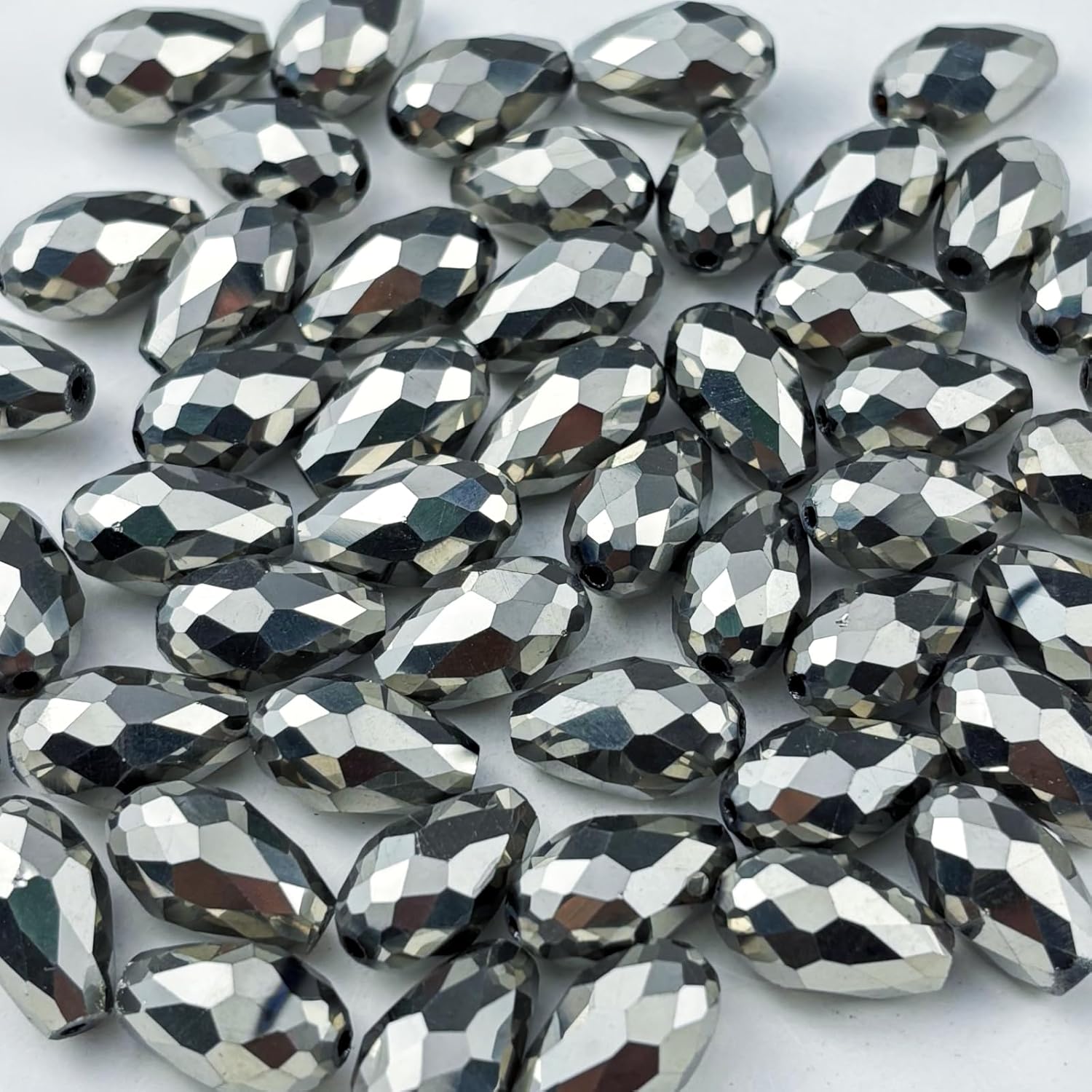100pcs 8x12mm Teardrop Crystal Glass Beads for Jewelry Making, Faceted Vertical Hole Teardrop Glass Spacer Beads for Wind Chimes Bracelet Earring Necklace DIY Craft(Silver)