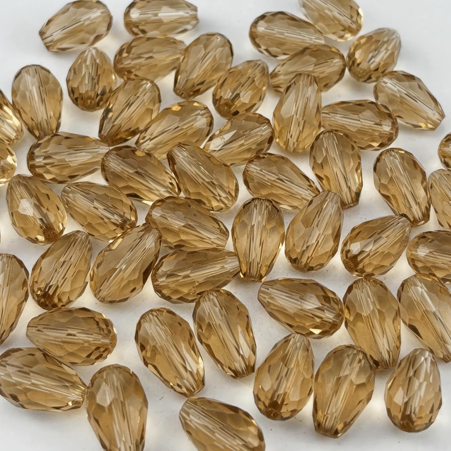 - DIY: Designed with an elegant teardrop shape featuring multiple facets and a central drilled hole, these faceted teardrop beads are sutable for various jewelry projects. With our multifaceted crystal glass beads, you can create beading chains tailored to your personal style—simply thread your string cord through the holes and pair them with your favorite accessories for DIY creations.