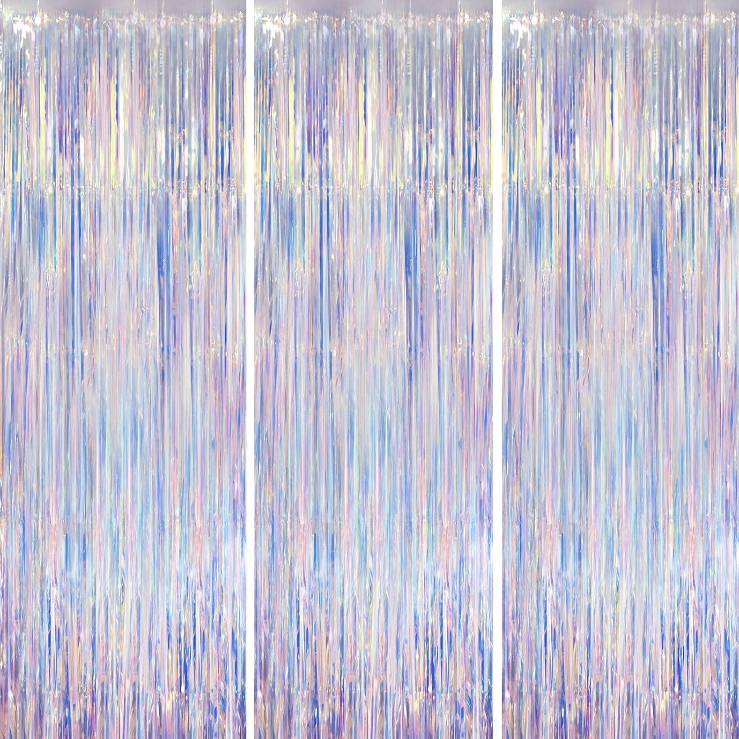 Iridescent Party Backdrop 3Packs Transparent Tinsel Foil Fringe Curtain for Frozen Mermaid Sea Birthday Party Decorations, 3.3x8.2ft Streamers Backdrops