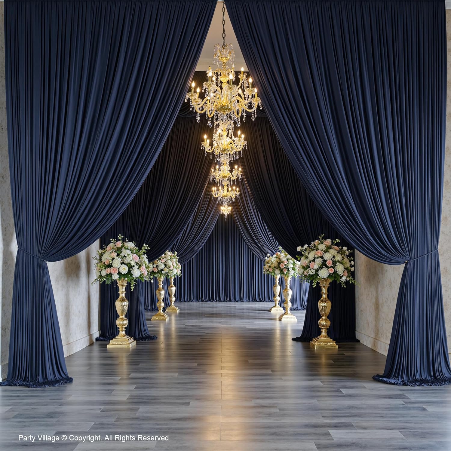 PartyVillage 50ft×15ft Navy Blue Backdrop Curtain for Wedding Parties, 10 Panels Wrinkle Free 15 FT Long Polyester Photo Backdrop Drapes Back Drop Cloth for Birthday Photography Background
