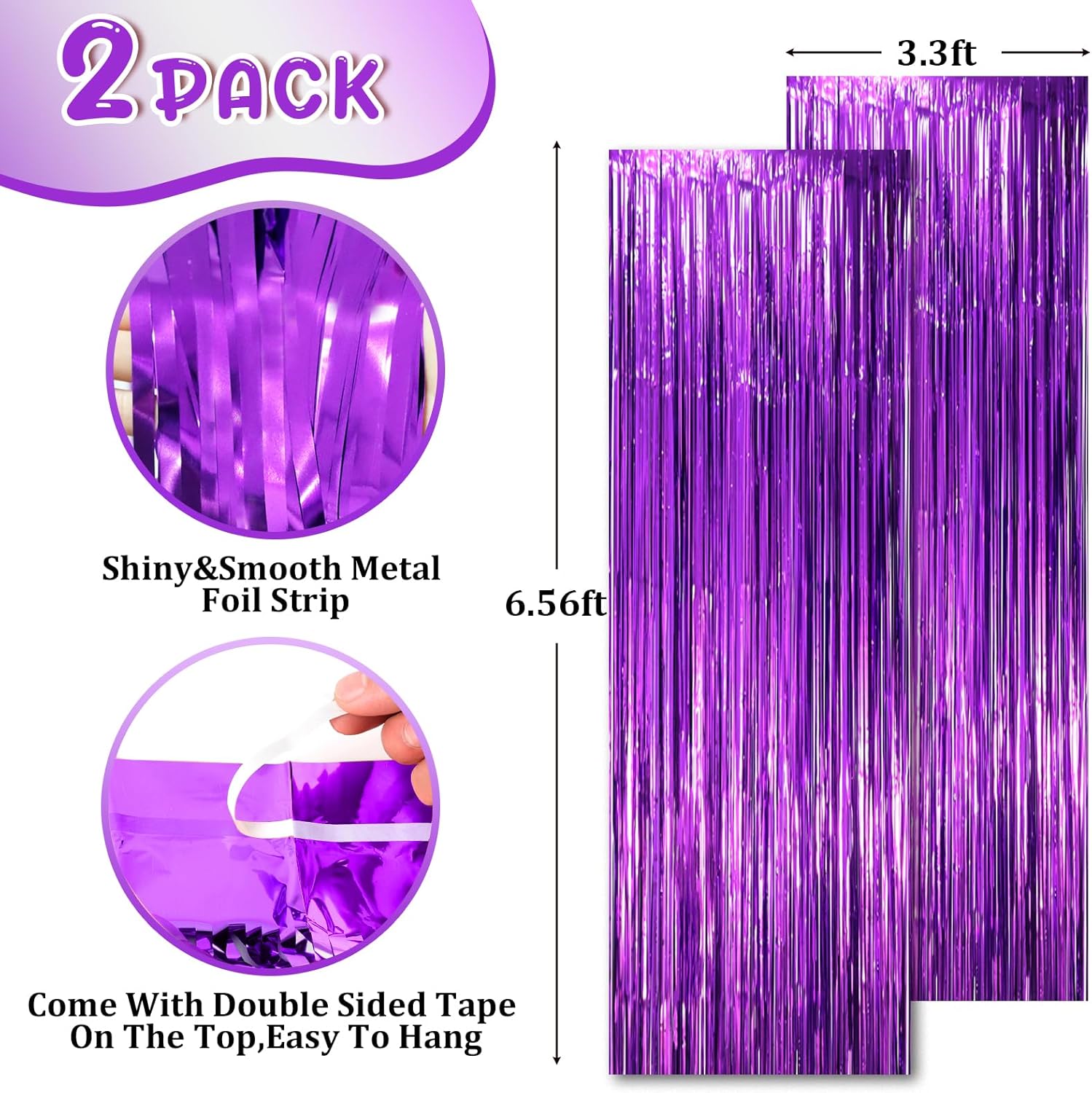 - Package Included: 3 packs of foil fringe curtains, the size of the foil curtain is 3.3*8.2ft. It's long enough to fit any occasion