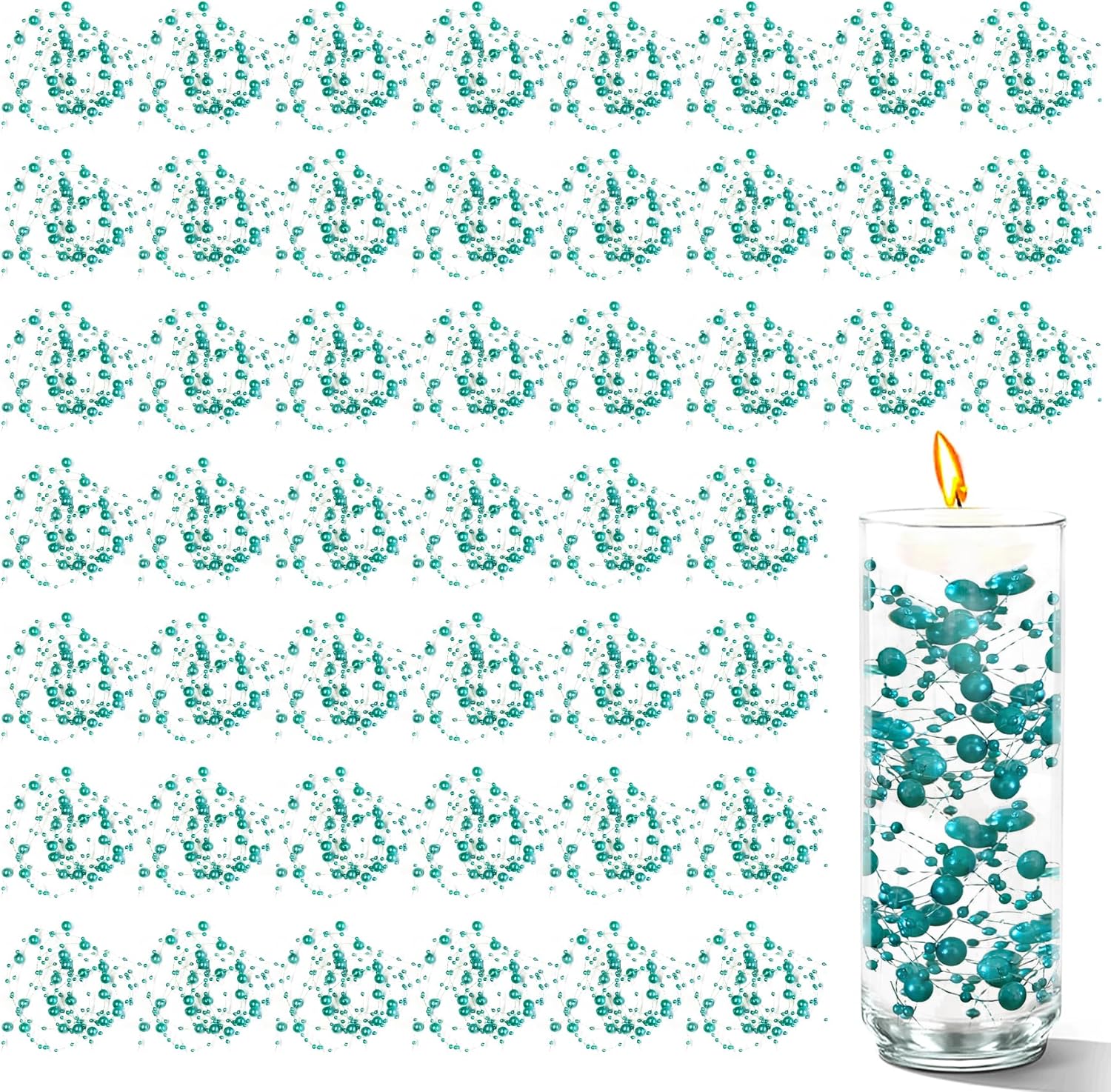 50 PCS Artificial Floating Beads for Centerpieces Vases, Blue Green 8+3mm String Beads for Wedding Party Faux Pearl String for Decorating, String Pearls for Crafts Vase Filler
