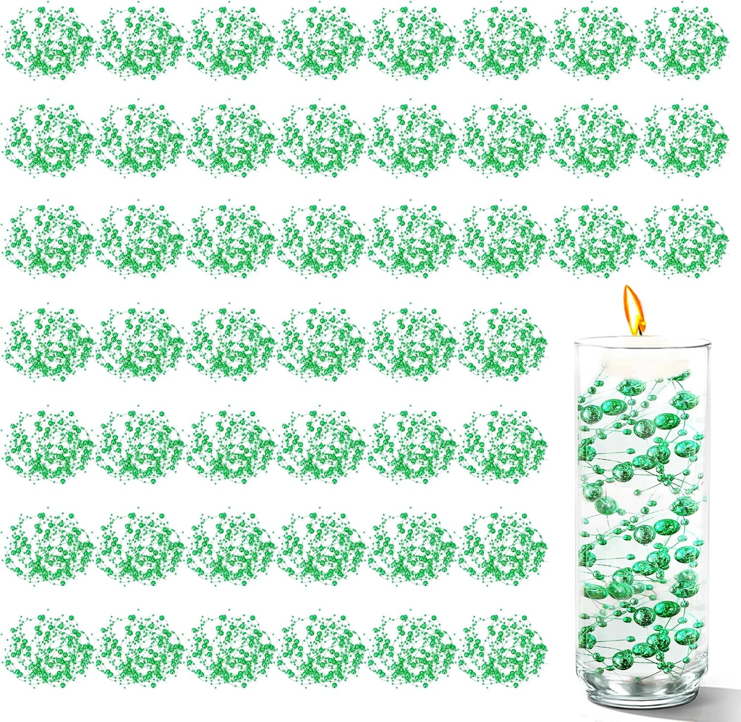 50 PCS Artificial Floating Beads for Centerpieces Vases, Dark Green 8+3mm String Beads for Wedding Party Faux Pearl String for Decorating, String Pearls for Crafts Vase Filler
