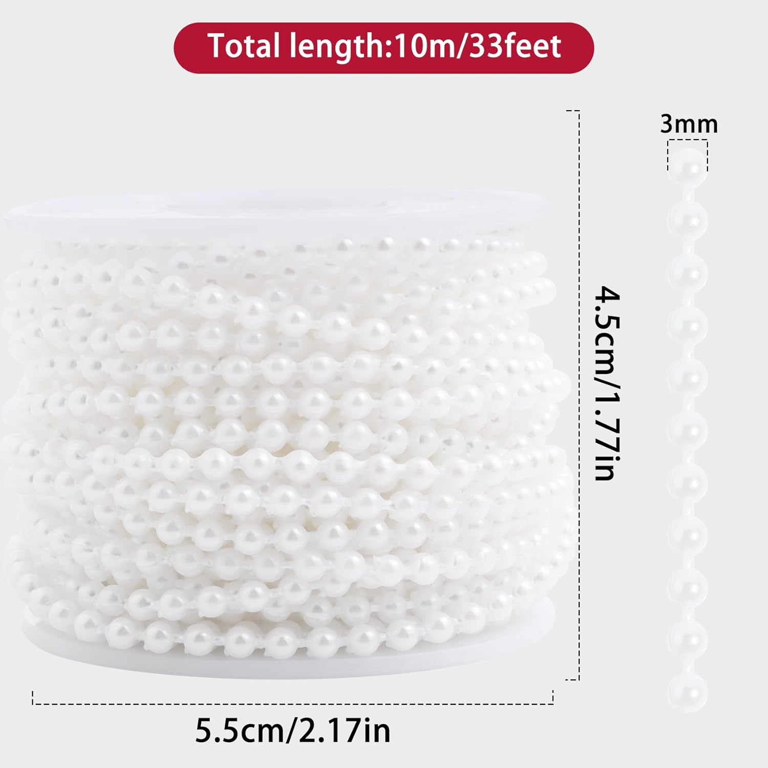 - Size: each roll of pearl chain has a total length of 33 feet/10 metres. The diameter of artificial pearls is 3mm. Please check the size before purchasing