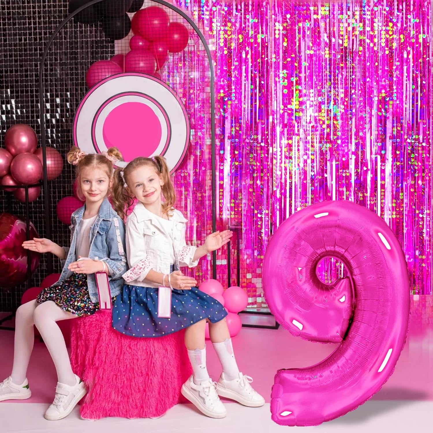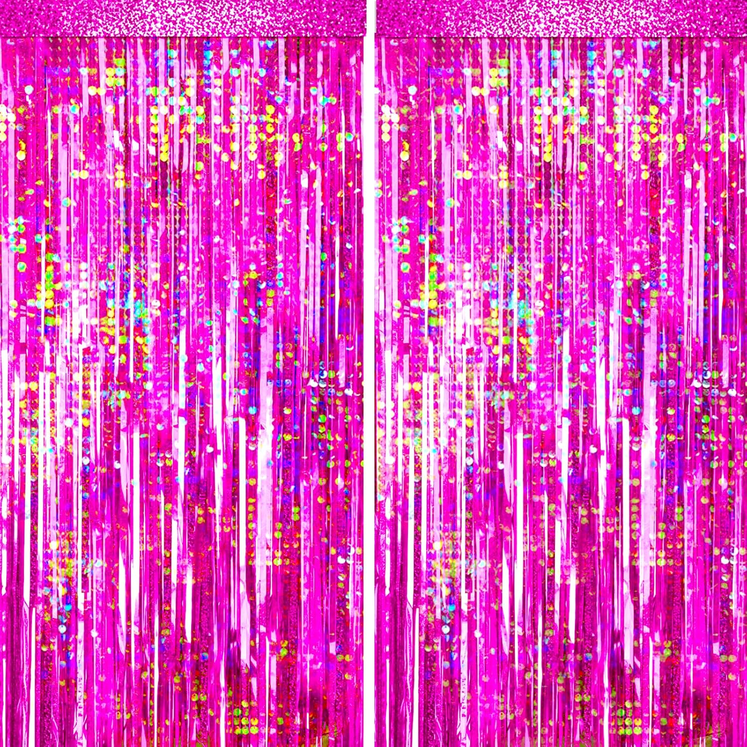 - Shimmery Hot Pink Fringe Backdrop: You will get 4 Pcs hot pink glitter tinsel backdrop. Size: 6.6ft*3.3ft. The foil fringe curtains are perfect for the door or wall to create an impressive decoration for parties, events, and photo booths.